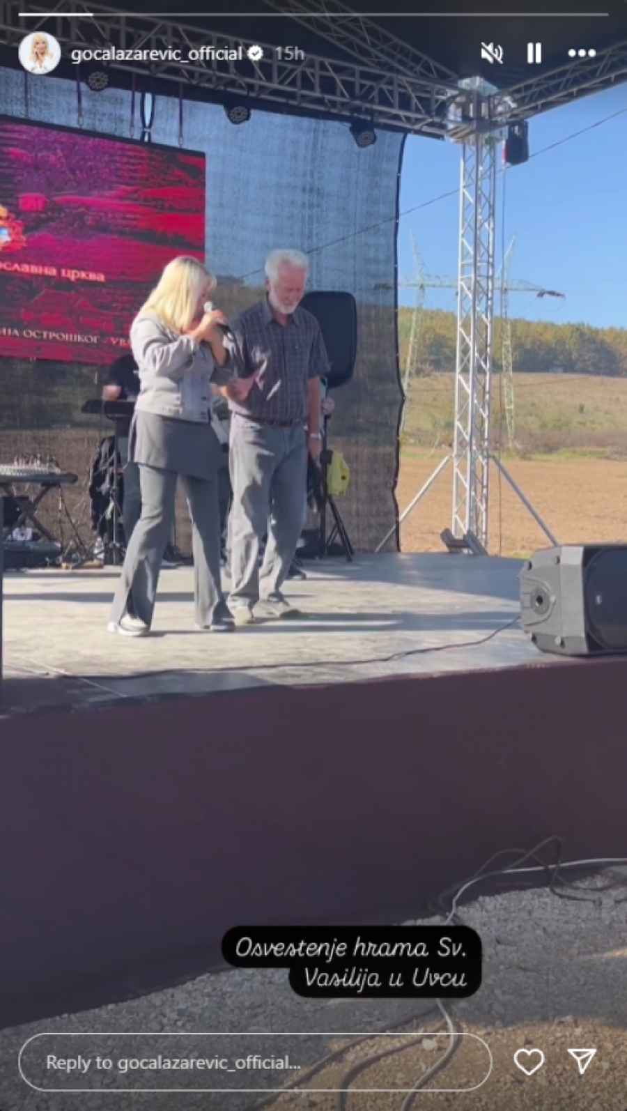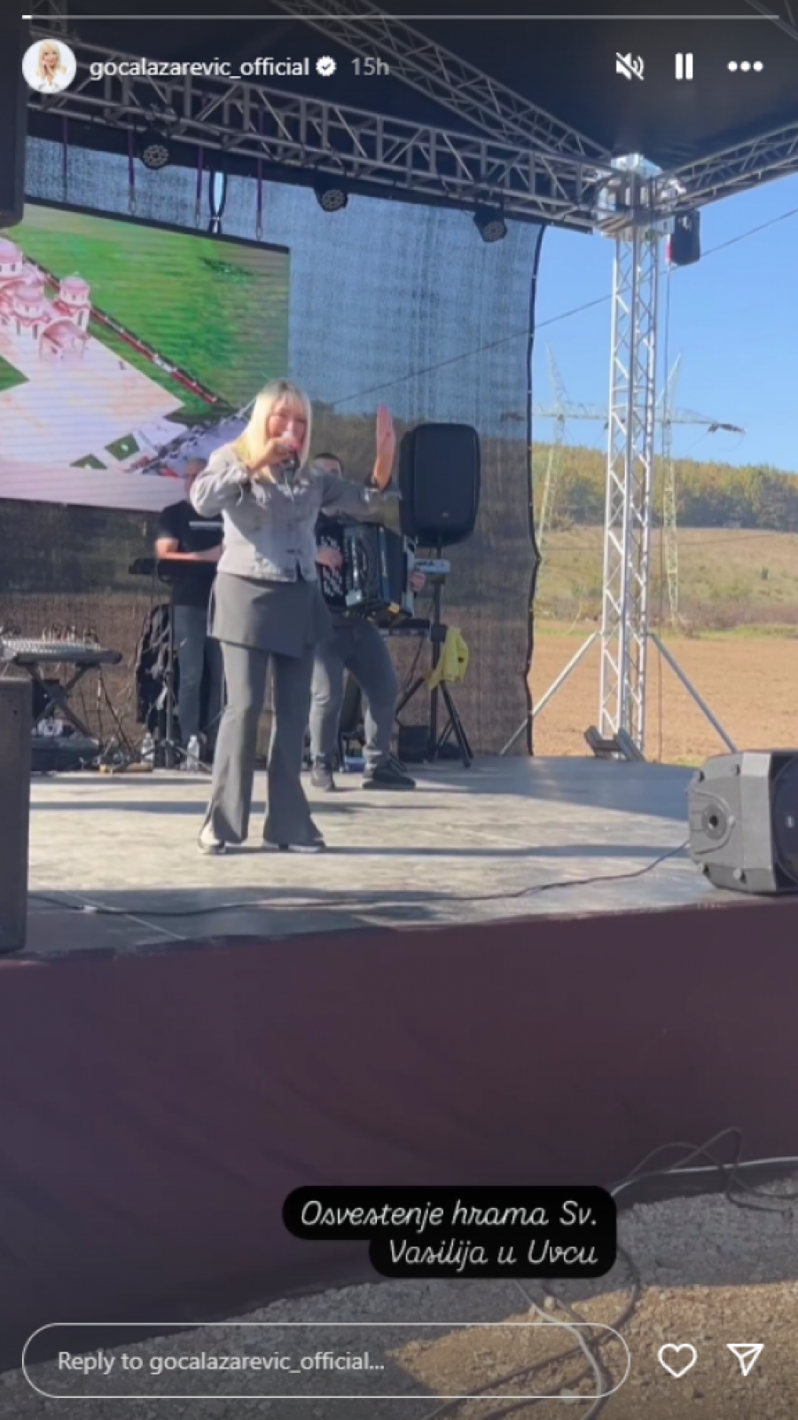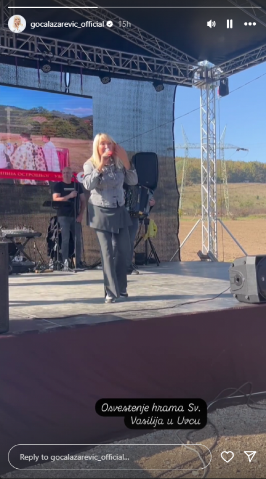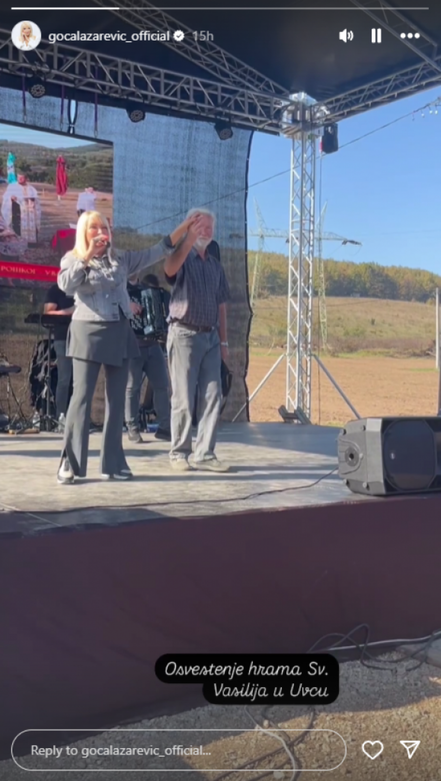 Pevačica Goca Lazarević nastupila je na događaju koji je organizovan povodom osveštenja hrama Svetog Vasilija na Uvcu, a na bini joj se desila zanimljiva siutacija. Naime, čovek iz publike se popeo na scenu dok je ona izvodila svoju pesmu "Oprosti mi što mislim na tebe". On je hteo da zaigra sa njom, pa ju je dohvatio za ruku, a ona ga je odbila: