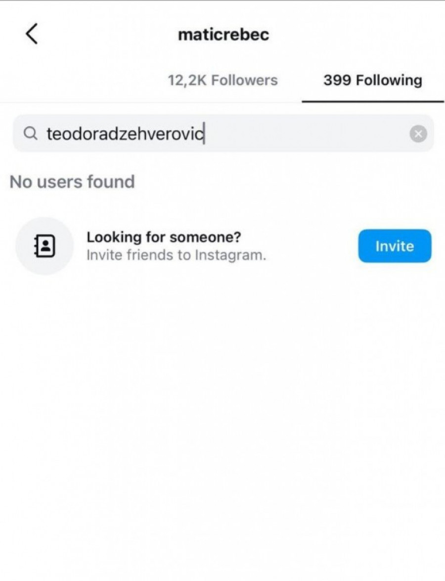 Teodora je otpratila košarkaša sa društvene mreže Instagram, a on je uzvratio istom merom brisanjem njenog profila sa liste prijatelja.