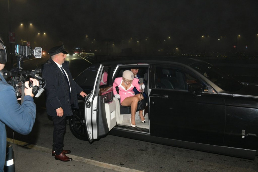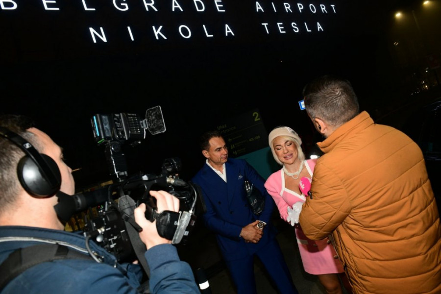 Jovana je došla u limuzini u pratnji svog partnera Dragana Stankovića, a ispred beogradskog aerodroma pojavila se obučena u stilu Džeki Kenedi.