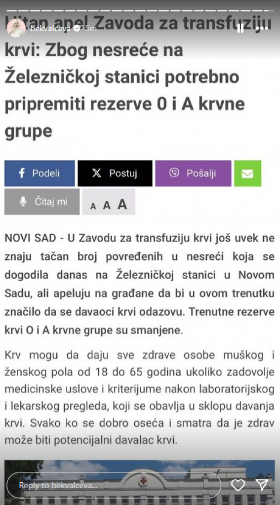 U akciju su se uključile i poznate Novosađanke Nataša i Kristina Bekvalac, Dara Bubamara, ali i Sloba Radanović, koji su odmah pozvali sve koje mogu da daju krv.