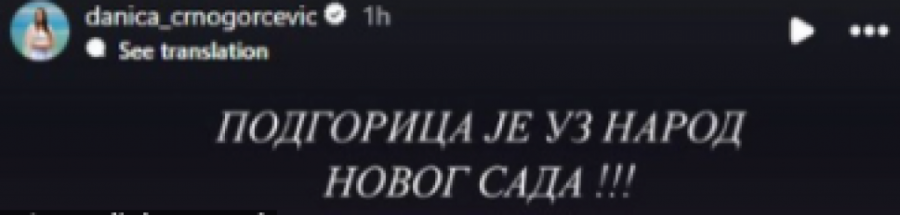 - Podgorica je uz narod Novog Sada! - napisala je pevačica na pomenutoj društvenoj mreži.