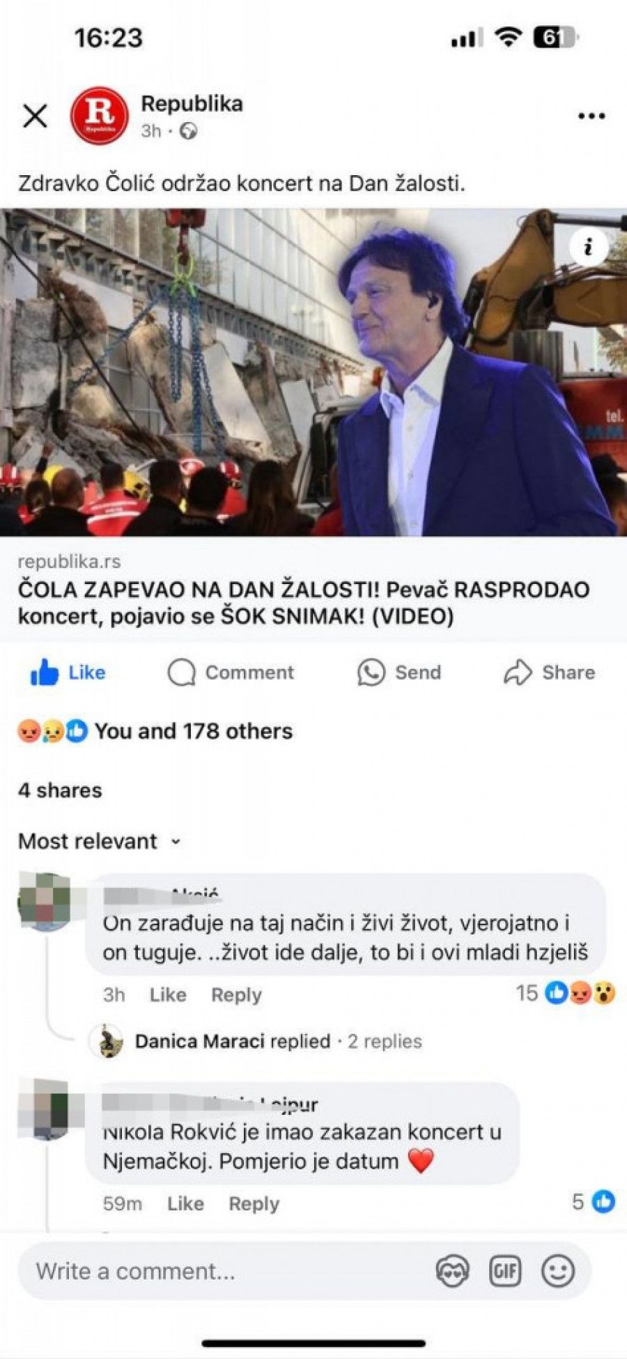 - Nikola Rokvić je imao zakazan koncert u Nemačkoj - a pomerio je datum! - glasila komentar koji je podržavao jednu stranu.