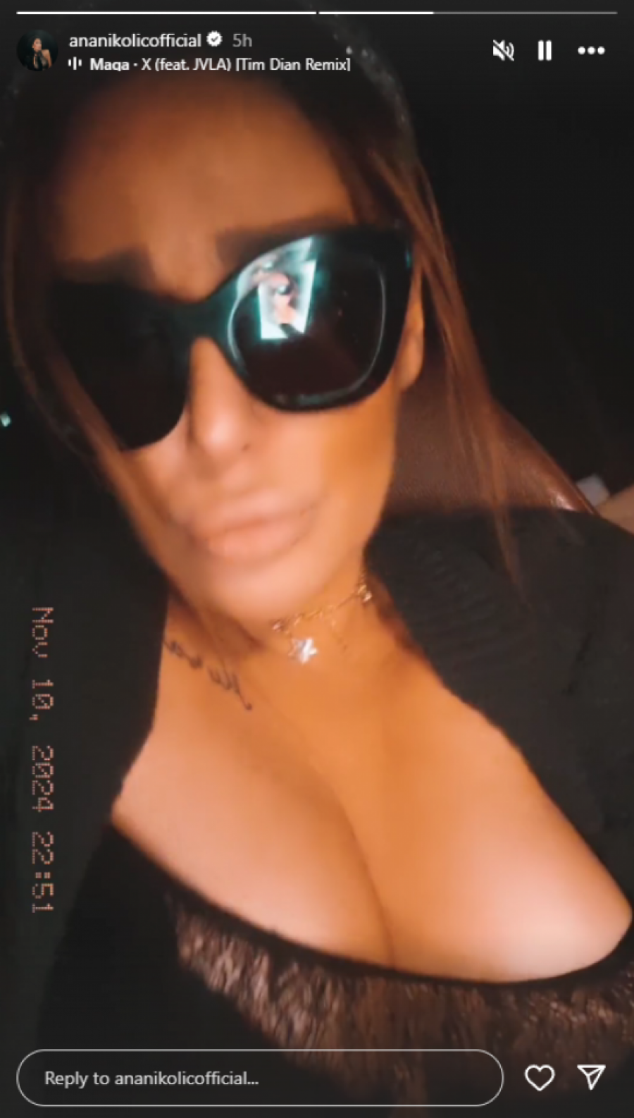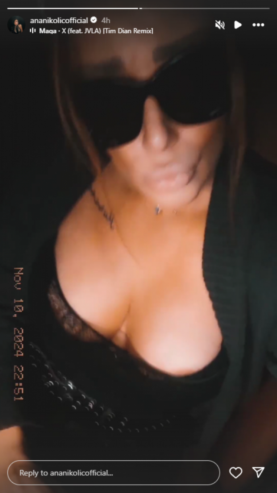 Pevačica Ana Nikolić ponovo je privukla pažnju svojih pratilaca na društvenoj mreži Instagram najnovijim provokativnim snimkom, koji je usnimila u automobilu. Naime, kako se može videti na video-klipu, Nikolićeva nosi crnu čipku preko grudi, dok u ritmu muzike senzualno povlači suknju gore-dole. Pritom je pevala pesmu i prelazila rukama preko svog tela, stvarajući uzavrelu atmosferu na ovoj socijalnoj platformi, kojoj, verujemo, mnogi nisu odeleli.