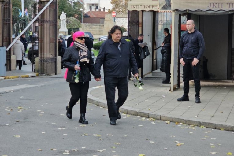 Folk pevačica Zorica Brunslik i njen suprug Miroljub Aranđelović Kemiš nosili su po jednu belu ružu.