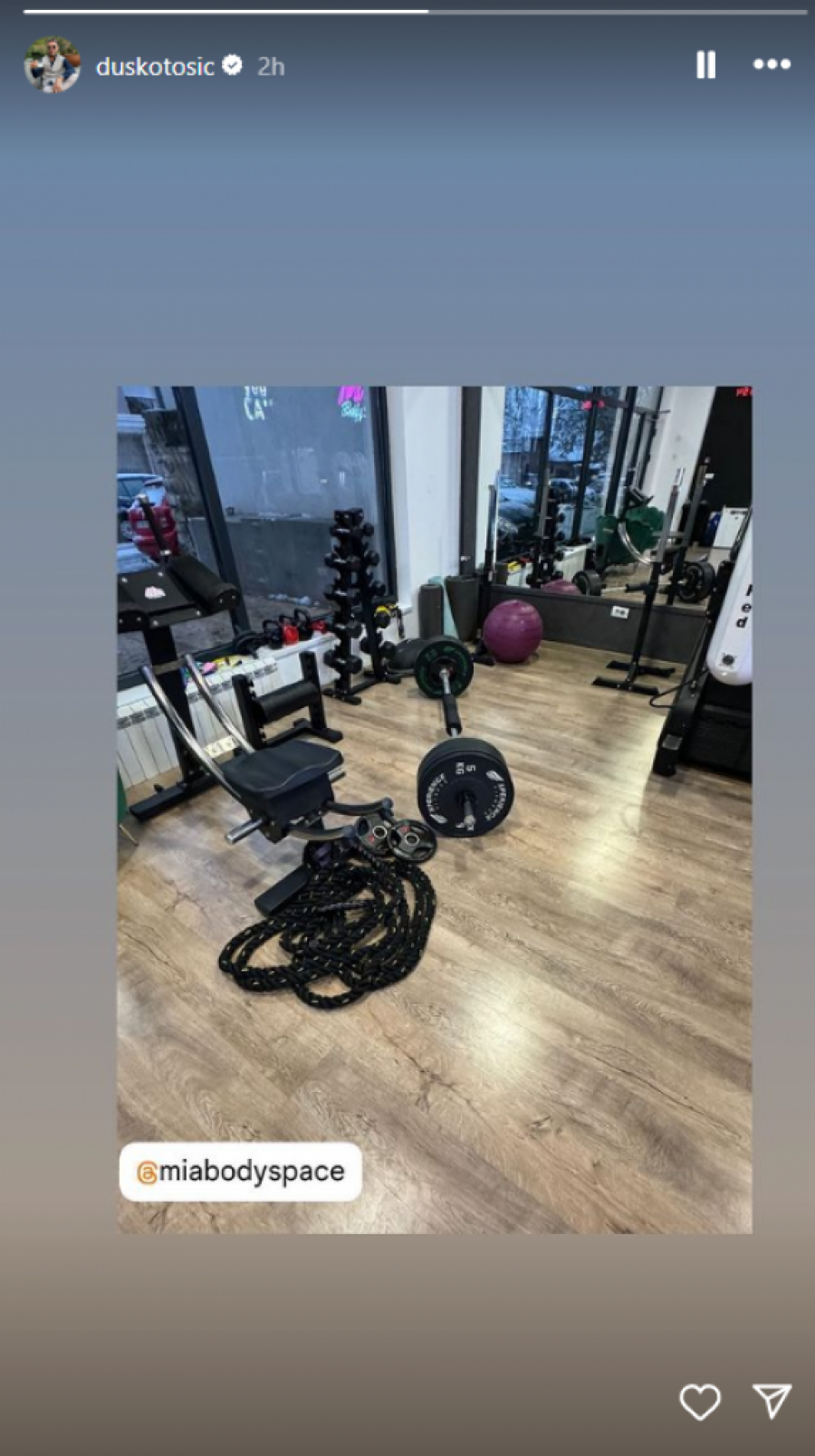 Duško se, nakon životnih promena, vratio vežbanju i fizičkoj kondiciji, što je bio sastavni deo njegove fudbalske karijere. Na svom Instagram profilu, podelio je fotografiju iz teretane gde vredno radi na sebi. Objekat u kom trenira pripada pevačici Miji Borisavljević.