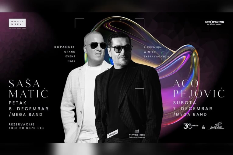 Najveću pažnju ove zime privlači SKI OPENING by Music Week, događaj koji 6. i 7. decembra preuzima centar dešavanja i transformiše Kopaonik u oazu luksuza i dobrog provoda. U glamuroznom Event Hall-u hotela Grand očekuju nas dve noći vrhunskog provoda – prve večeri nastupa Saša Matić, dok će drugu obeležiti Aco Pejović, a obe večeri sjajni Mega Bend zagrejaće atmosferu.