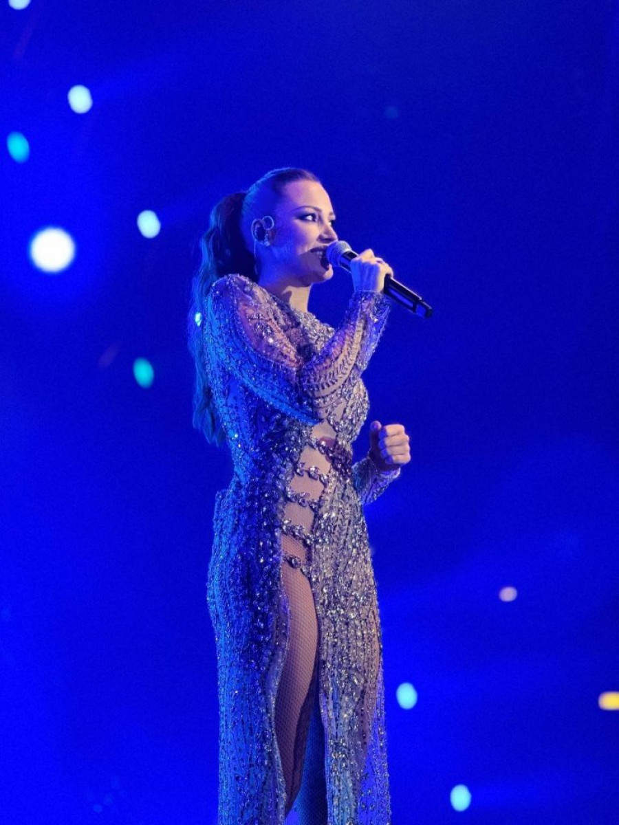 Naime, u jednom trenutku, popularna pevačica je istrčala na binu u brushalteru ukrašenom cirkonima, dok su joj se na stomaku jasno ocrtavale zavidne pločice. Publika je reagovala ovacijama i glasnim aplauzima, dok je vatromet na bini dodatno pojačao atmosferu.