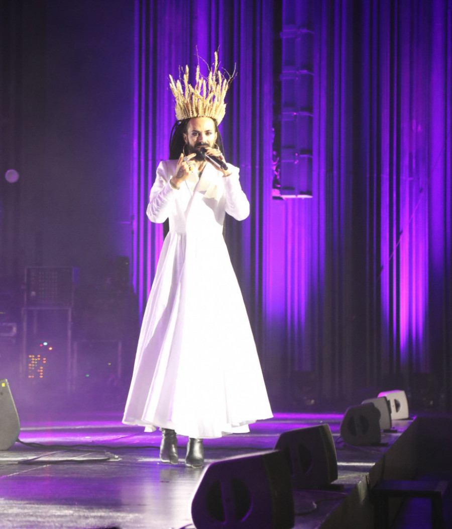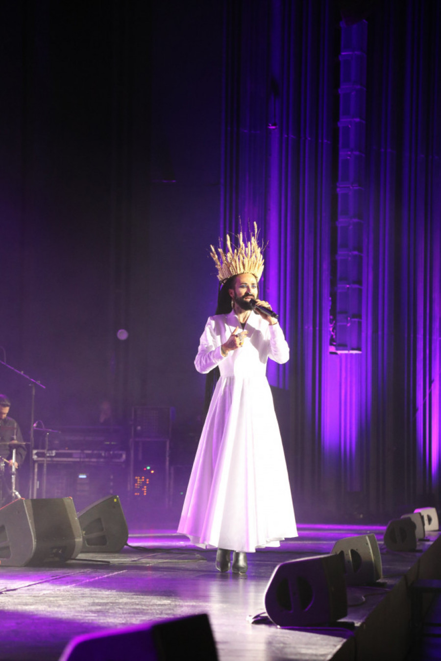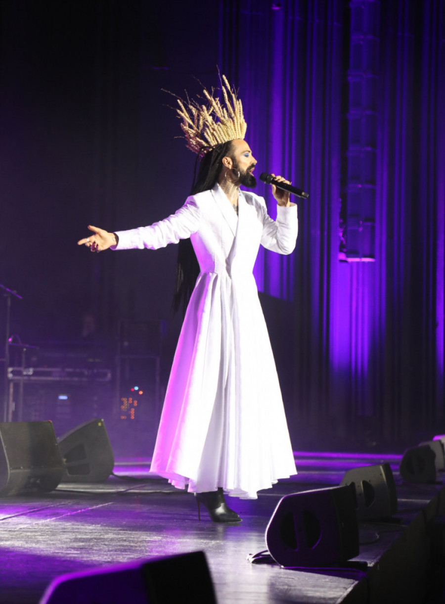 Pevač Božo Vrećo je sinoć u punom Sava centru izazvao veliku pažnju na koncertu, kako svojim glasom, tako i stajlingom. On se na sceni pojavio u beloj karton haljini do poda, štiklama i kruni na glavi koja je bila napravljena od šiblja, a zatim je progovorio o uspomenama koje ga vezuju za Beograd.