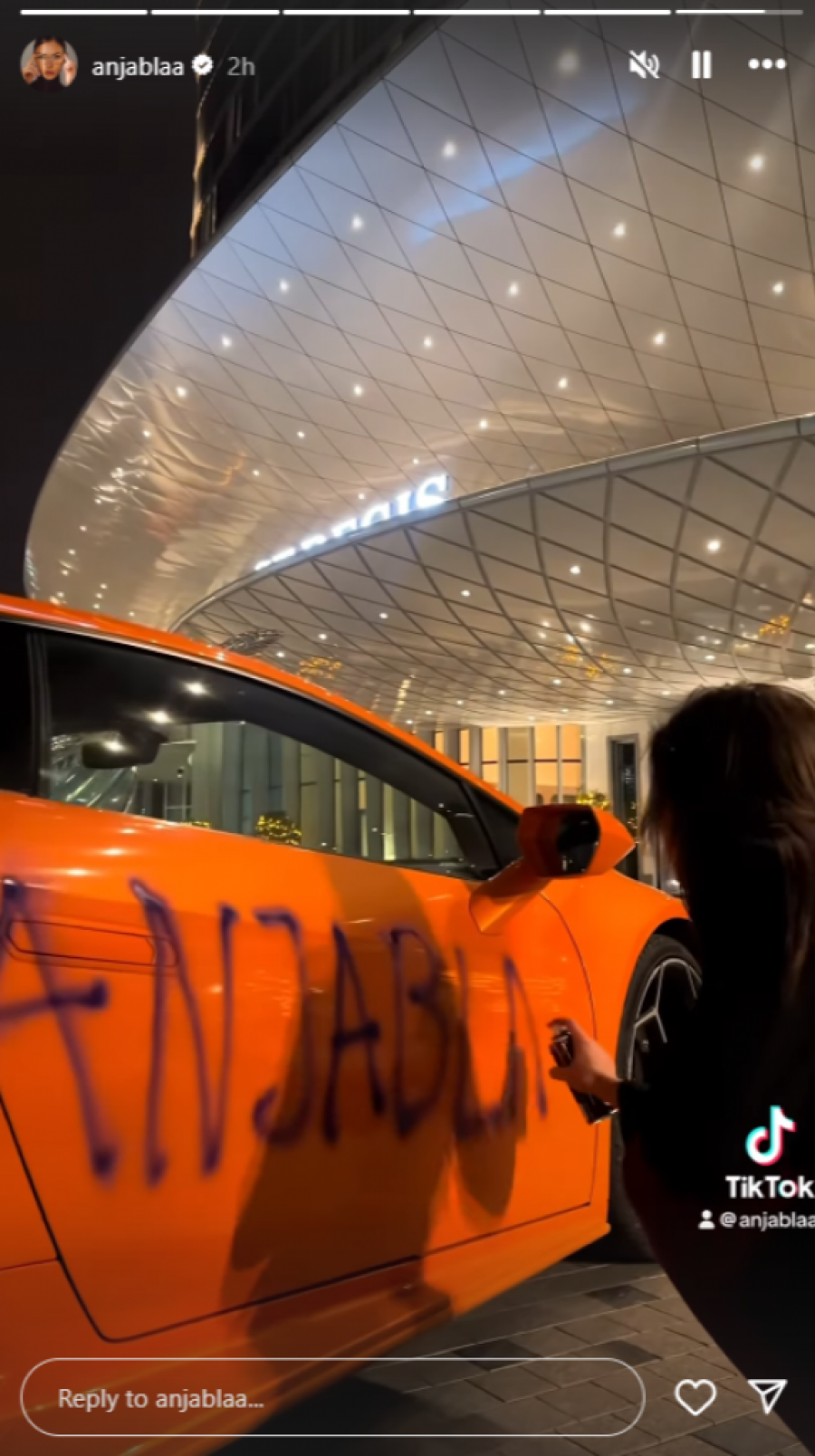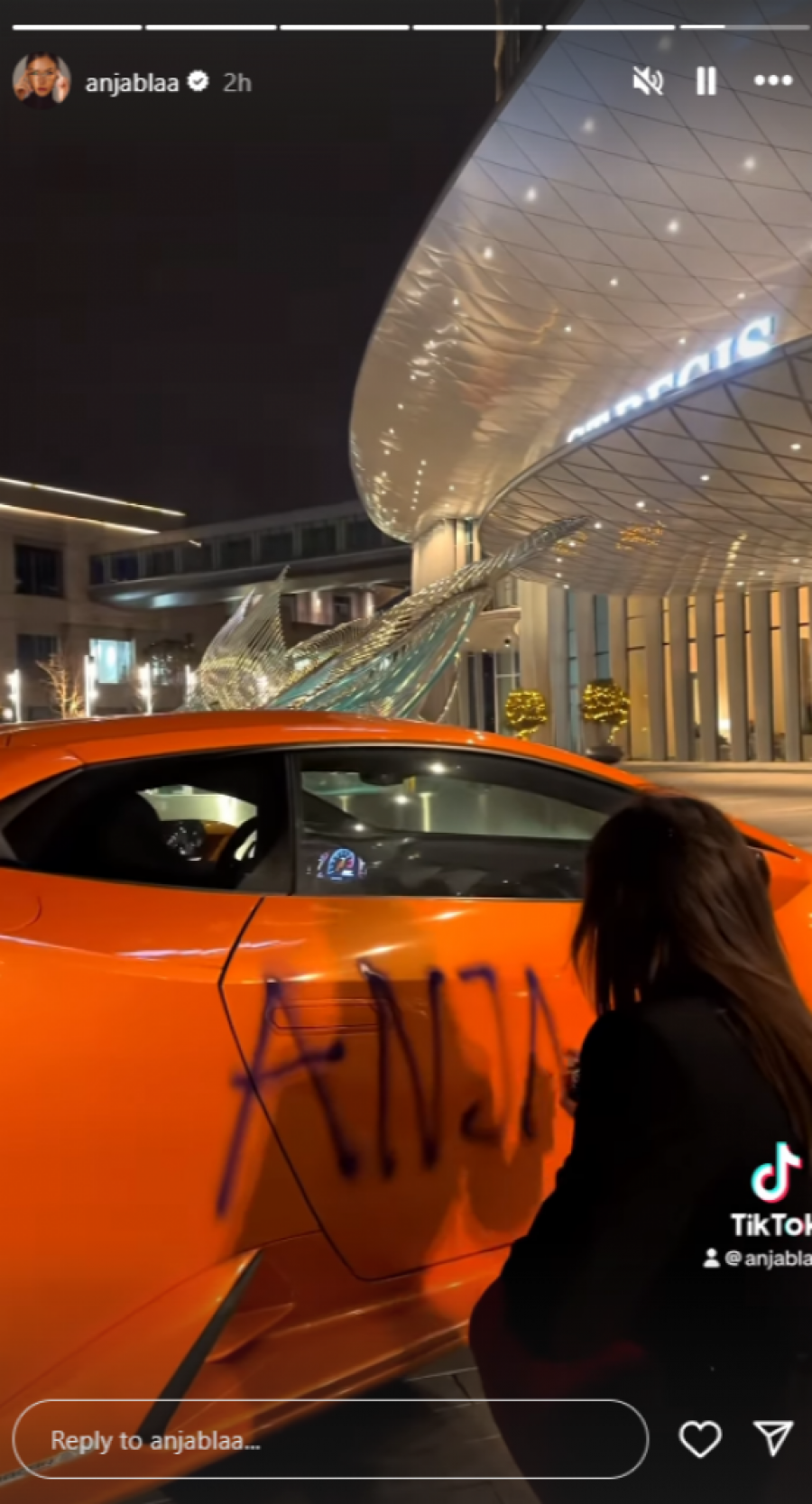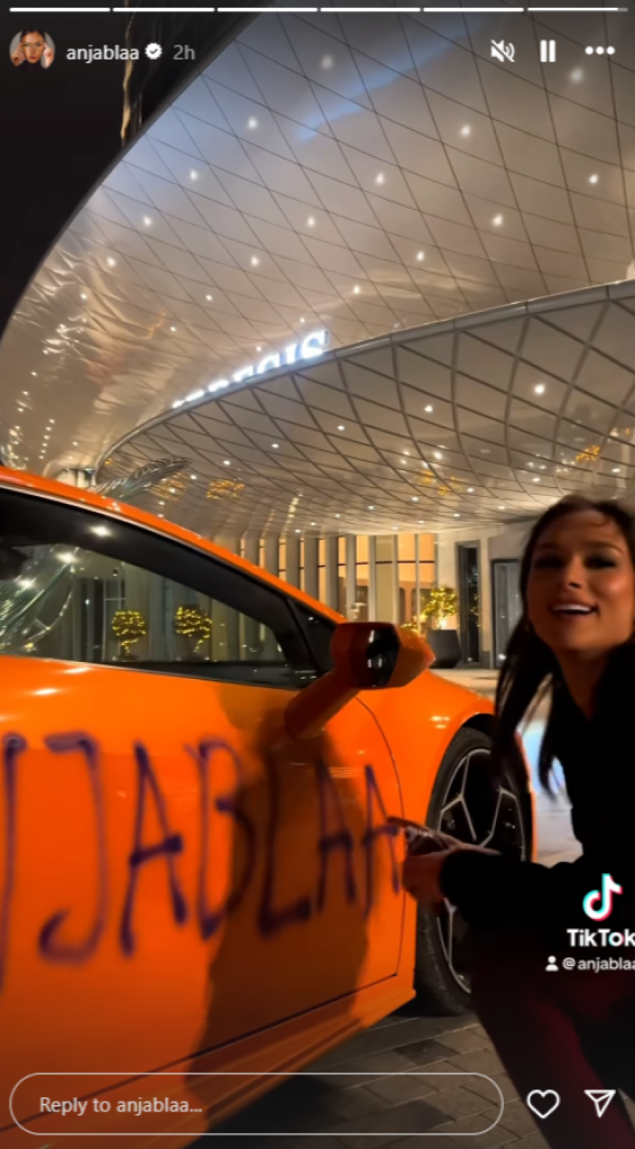 Na društvenim mrežama pojavila se i kontroverzna scena na kojoj se vidi kako Anja Bla, sa kojom je Baka Prase bio u vezi, uništava karakteristični narandžasti Lamborghini sprejom. Ovaj incident je izazvao brojne spekulacije i komentare među pratilacima, jer nije jasno šta je bio pravi razlog za ovaj čin. Neki veruju da je to učinjeno iz ljubomornih pobuda, dok drugi smatraju da je cela situacija bila isplanirana kako bi se privukla pažnja i poboljšala samopromocija popularnog para.