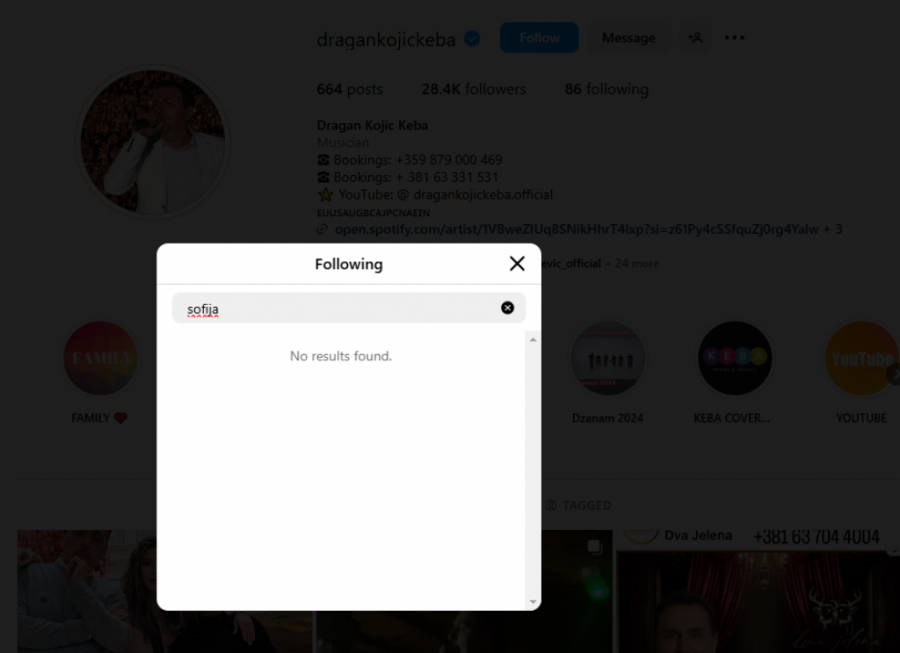 Sve je odmah zanimalo kako je njegova porodica prihvatila novu snajku. Majka Olja i sestra Nataša su to uradile prve, tako što su je zapratile na društvenoj mreži Instagram. Sa druge strane, Keba ne prati svoju novu snajku, što je svima bilo čudno.