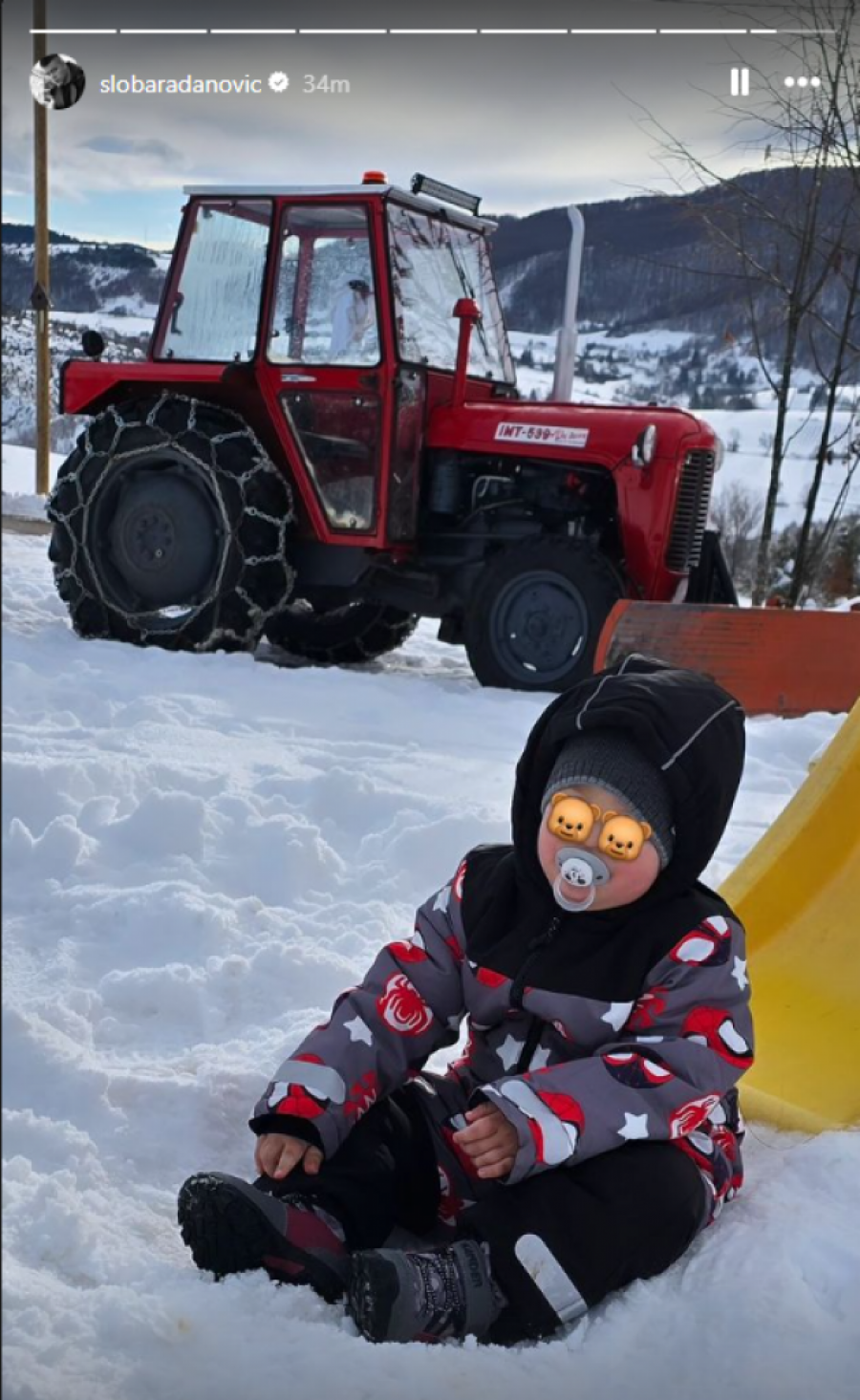Sloba se uslikao i sa prijateljima, a potom pokazao i kako se njegov sin Damjan igra u snegu.
