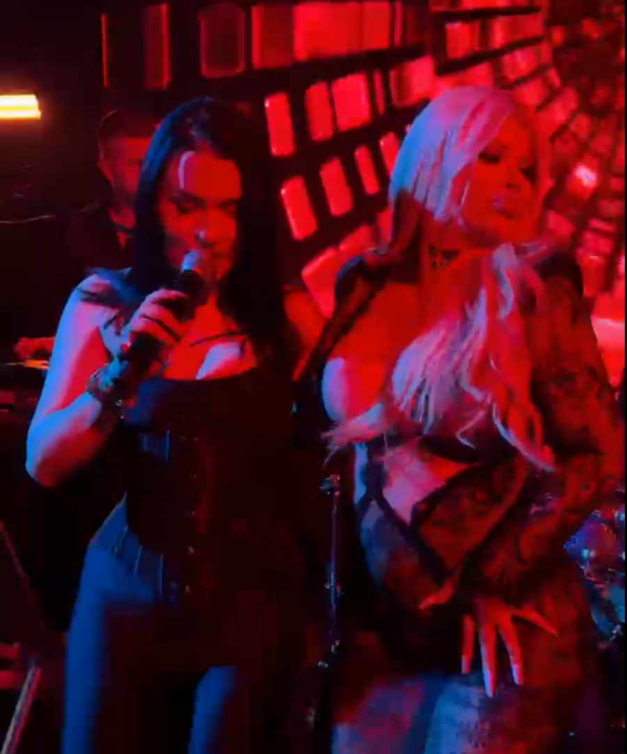 Međutim, još veći haos je nastao kada joj se na nastupu pridružila 19-godišnja koleginica Zorana Mićanović, koja je takođe ponela izazovan stajling. Njih dve su đuskale i uvijale se na sceni, privlačeći poglede publike, koja nije mogla da odluči gde prvo da gleda. Mnogi su ovu "borbu" nazvali prsa u prsa s obzirom na to da obe pevačice mogu da se pohvale pozamašnim oblinama, na koje niko ne ostaje ravnodušan.