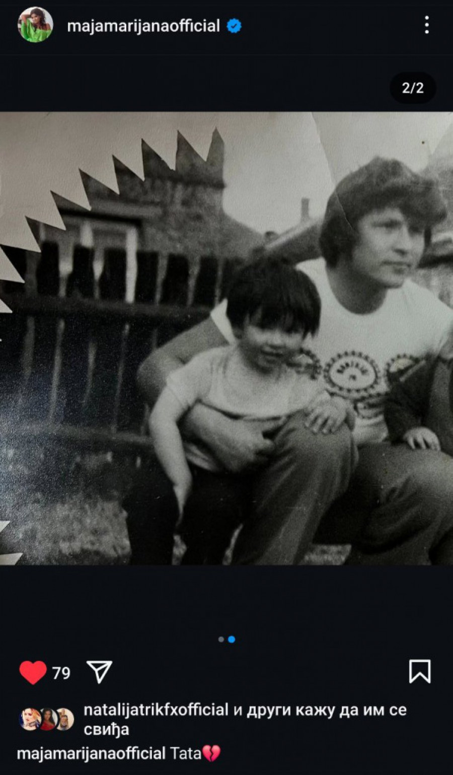 Na svom Instagram profilu objavila je nekoliko fotografija iz svog detinjstva a pored njih je stavila emotikon slomljenog srca što znači da je u dubokoj žalosti i tugi zbog ogromnog gubitka.