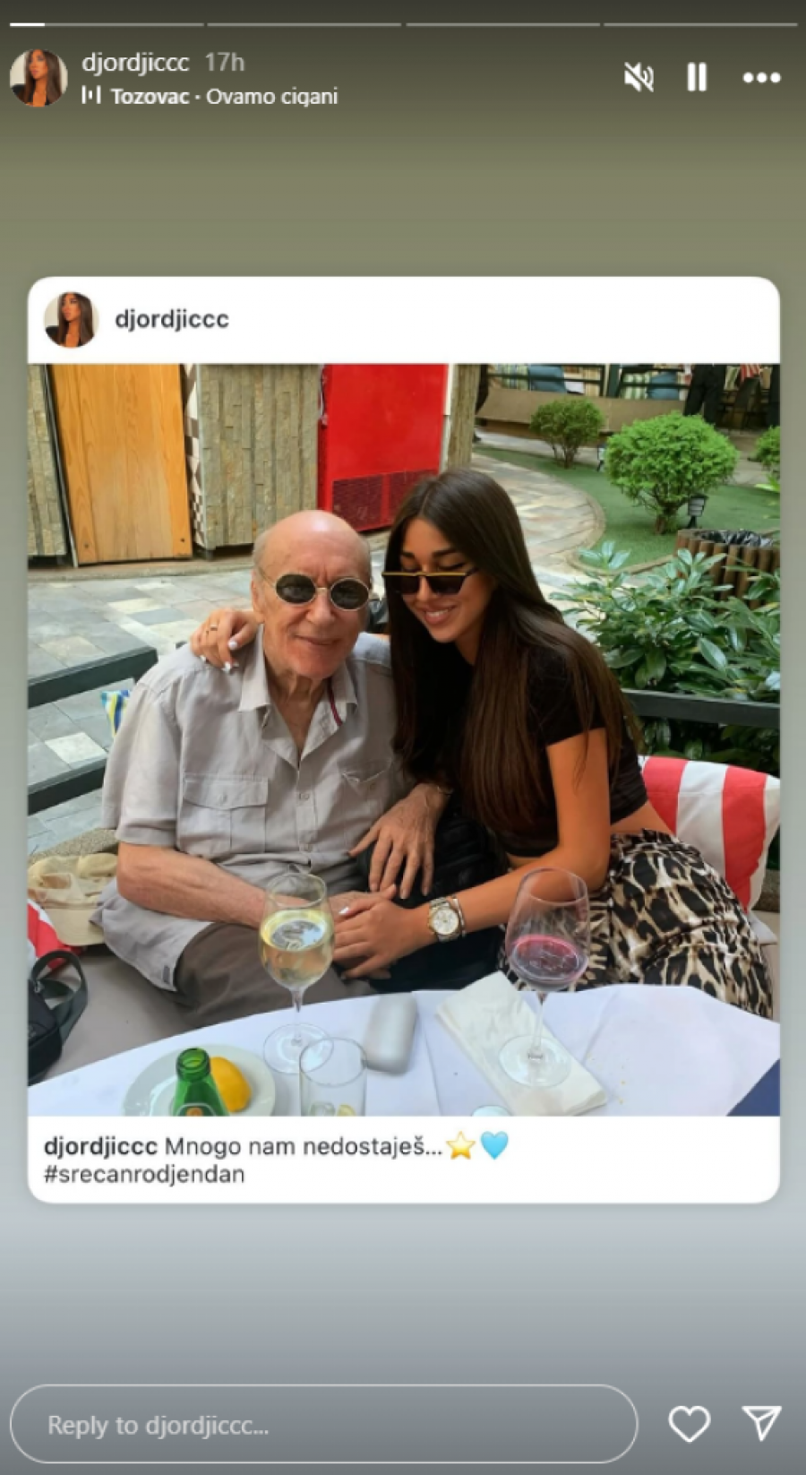 - Mnogo nam nedostaješ - napisala je Jovana, dok se u pozadini čuje jedan od najvećih Tozovčevih hitova, pesma "Ovamo Cigani", koja je obeležila njegovu bogatu karijeru.