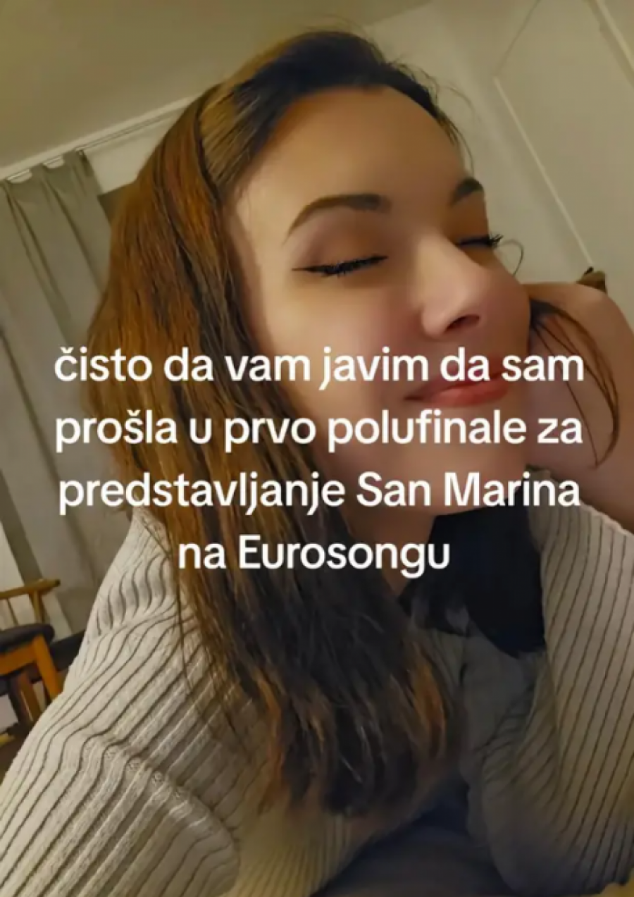 - Čisto da vam javim da sam prošla u prvo polufinale za predstavljanje San Marina u Eurosongu - napisala je u opisu TikTok videa.