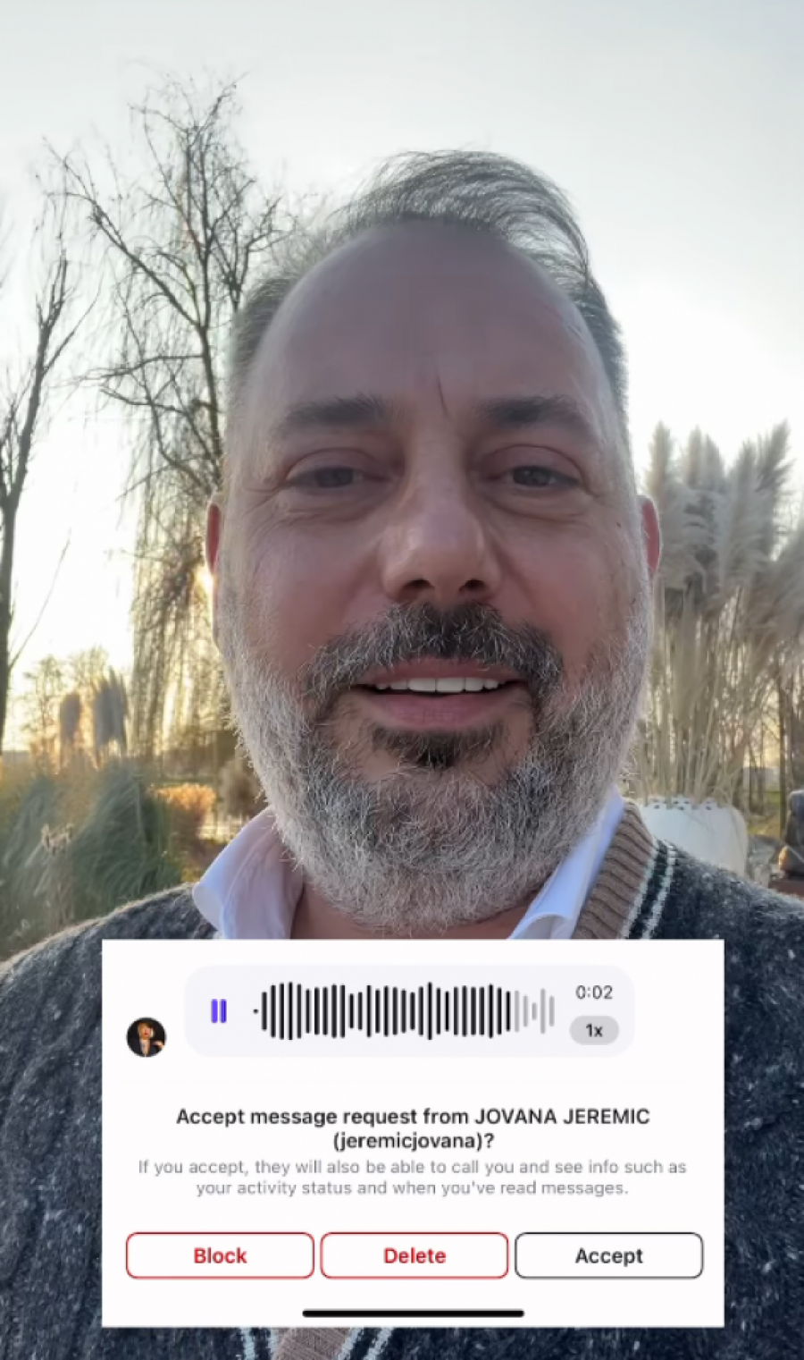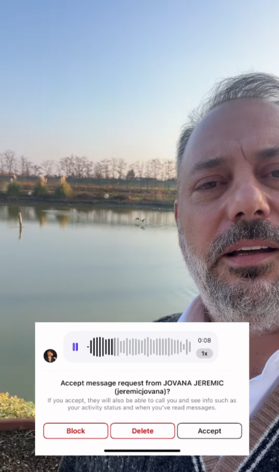 - Branko, zdravo, Jovana Jeremić je, urednica i voditeljka "Jutra sa dušom" sa Pink televizije. Da li mogu dobiti tvoj kontakt, volela bih da budeš moj gost u šouu, u emisiji - rekla je Jovana u glasovnoj poruci, a Branko je na to, dok se smejao u kameru, poručio:
