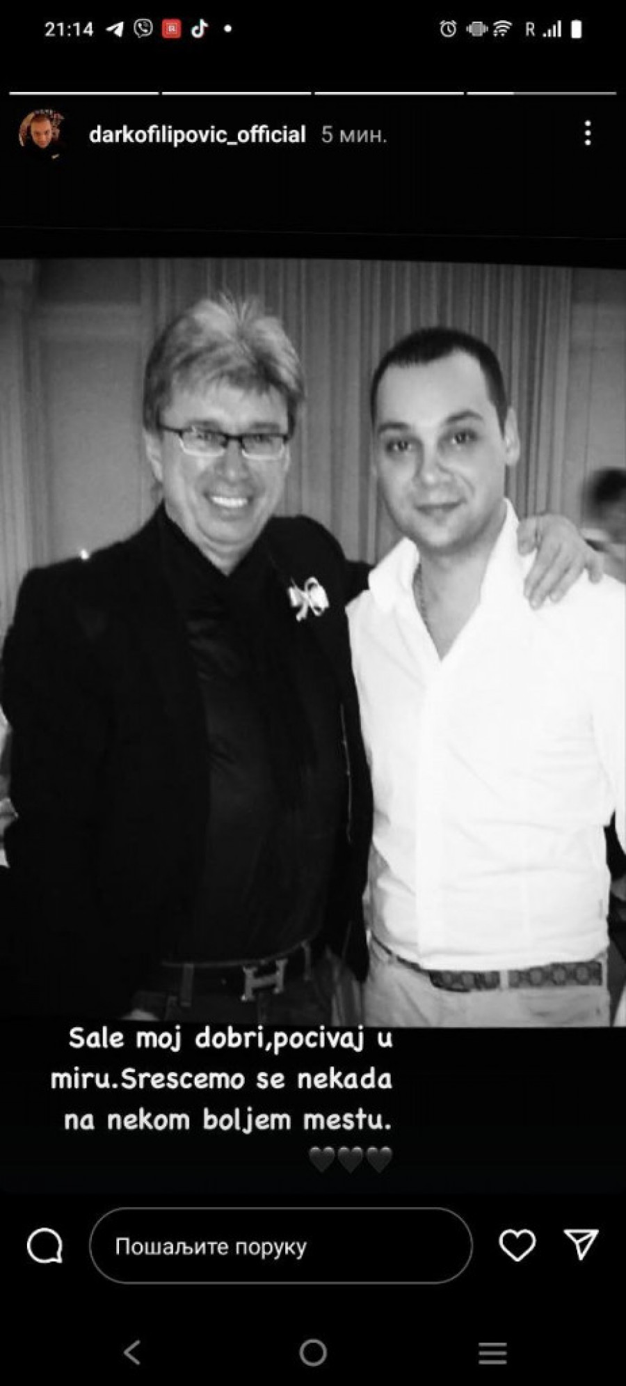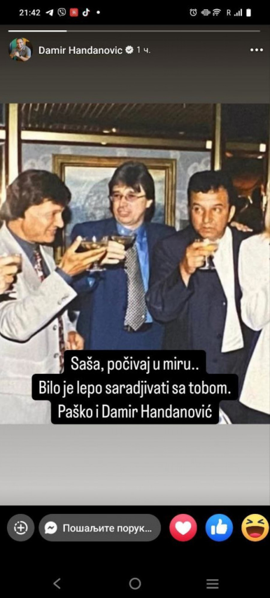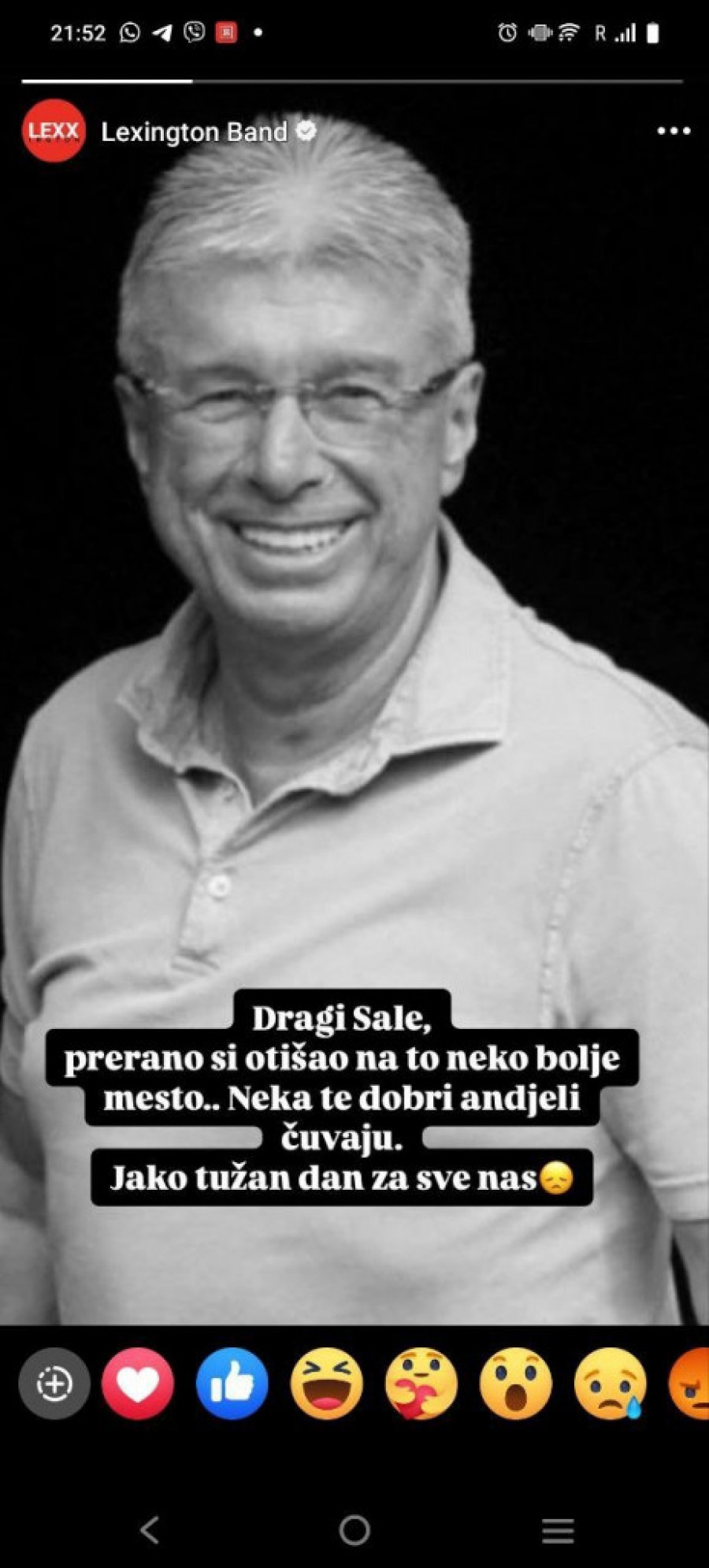 - Počivaj u miru dragi Sale! Bila je velika čast poznavati te - napisao je Saša Kovačević na svom profilu.