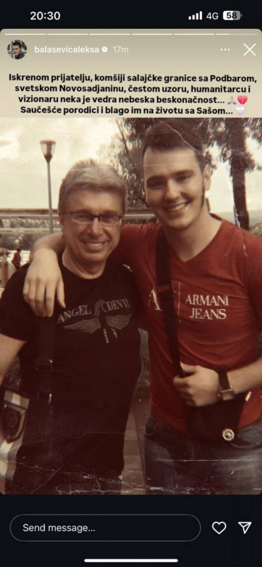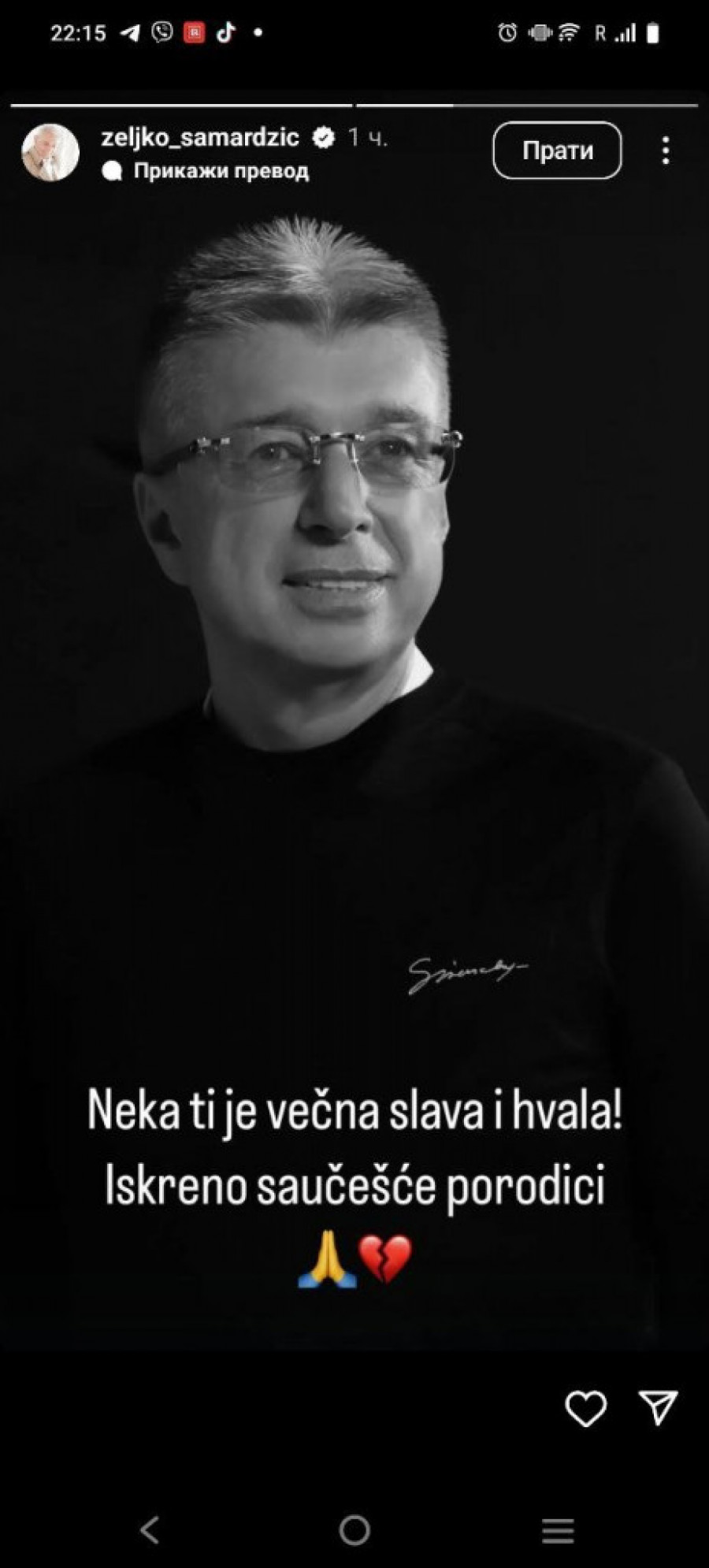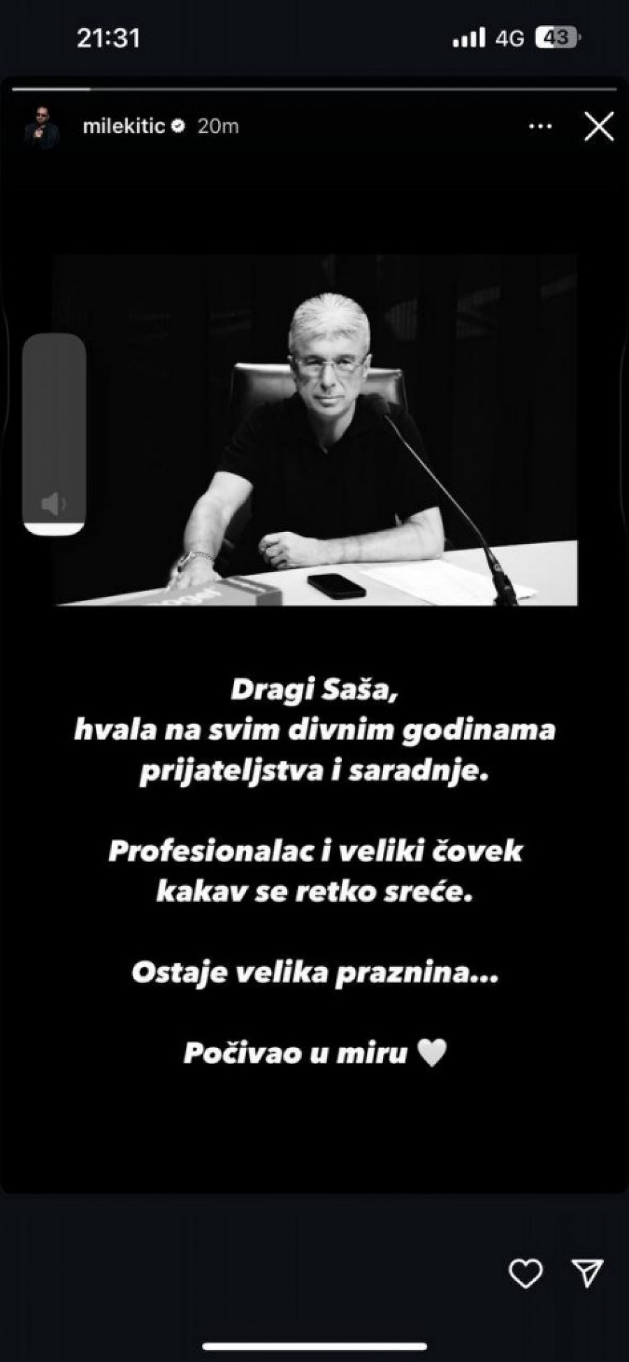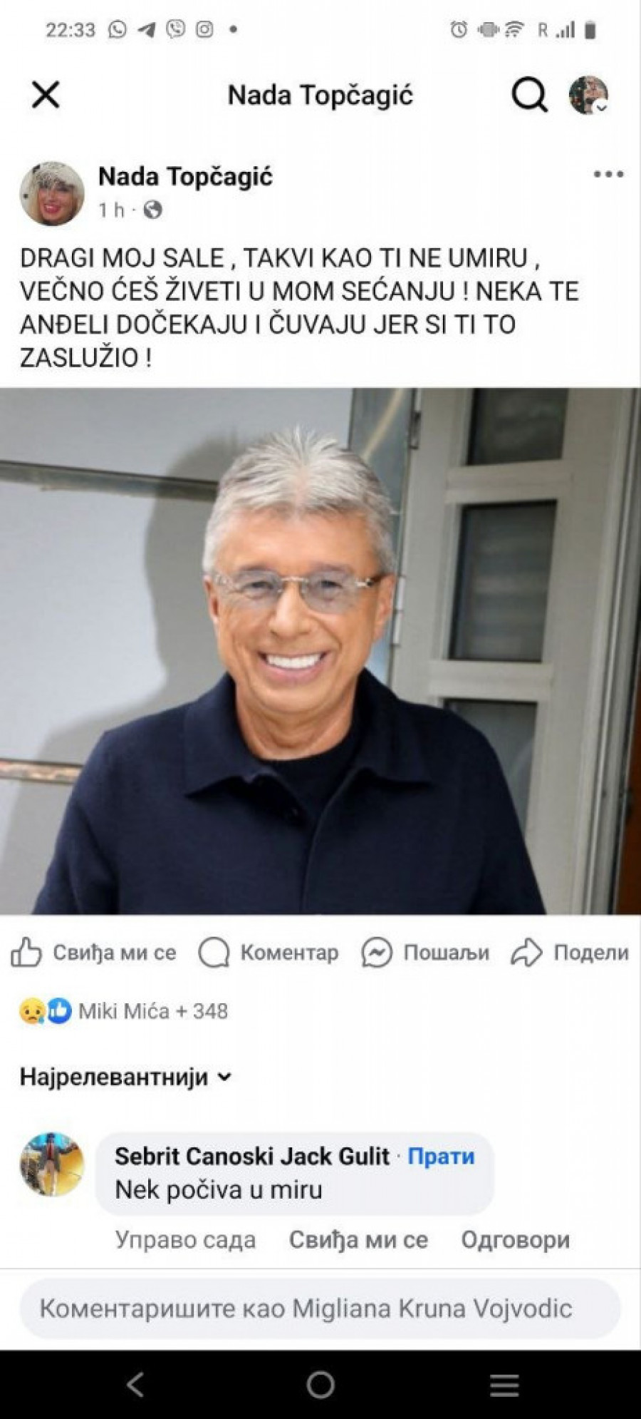 - Počivaj u miru dragi Sale! Bila je velika čast poznavati te - napisao je Saša Kovačević na svom profilu.