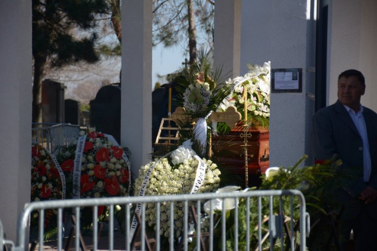 Na sanduku se nalaze venci sa potresnim porukama najbližih.