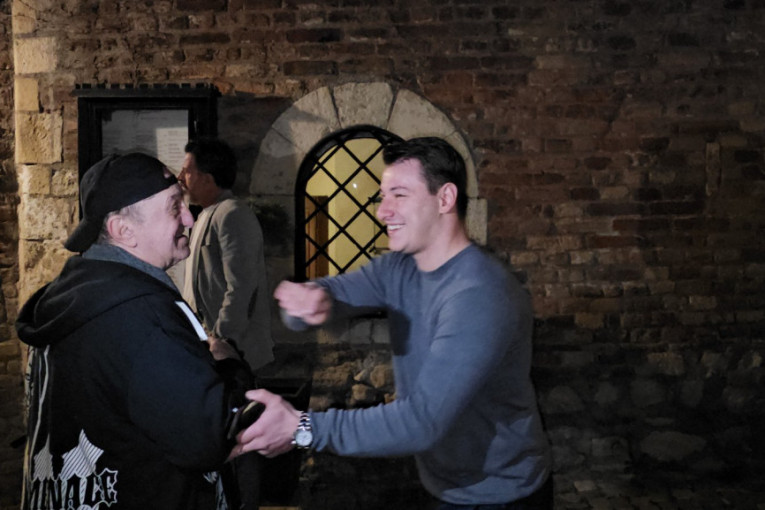 Na pitanje našeg novinara da li će zaista večeras zaprositi Tanju, Muki je razvukao širok osmeh i poprilično se unervozio.