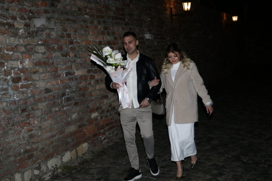 U Nemanjinoj ruci su se mogli videti predivan buket belih kala, koje su omiljeno cveće pevačice, a u buketu se nalazio i mali medvedić, što je bio poseban i simpatičan detalj koji je dodatno obogatio ovaj trenutak.