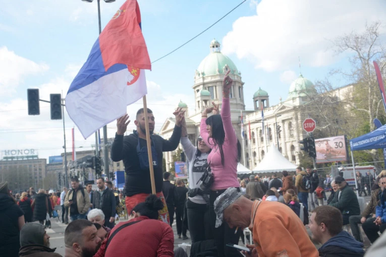 Na današnjem skupu ispred Narodne skupštine, koji je okupio brojne građane u znak podrške očuvanju nacionalnog identiteta, dogodio se momenat koji će mnogima ostati urezan u sećanju.