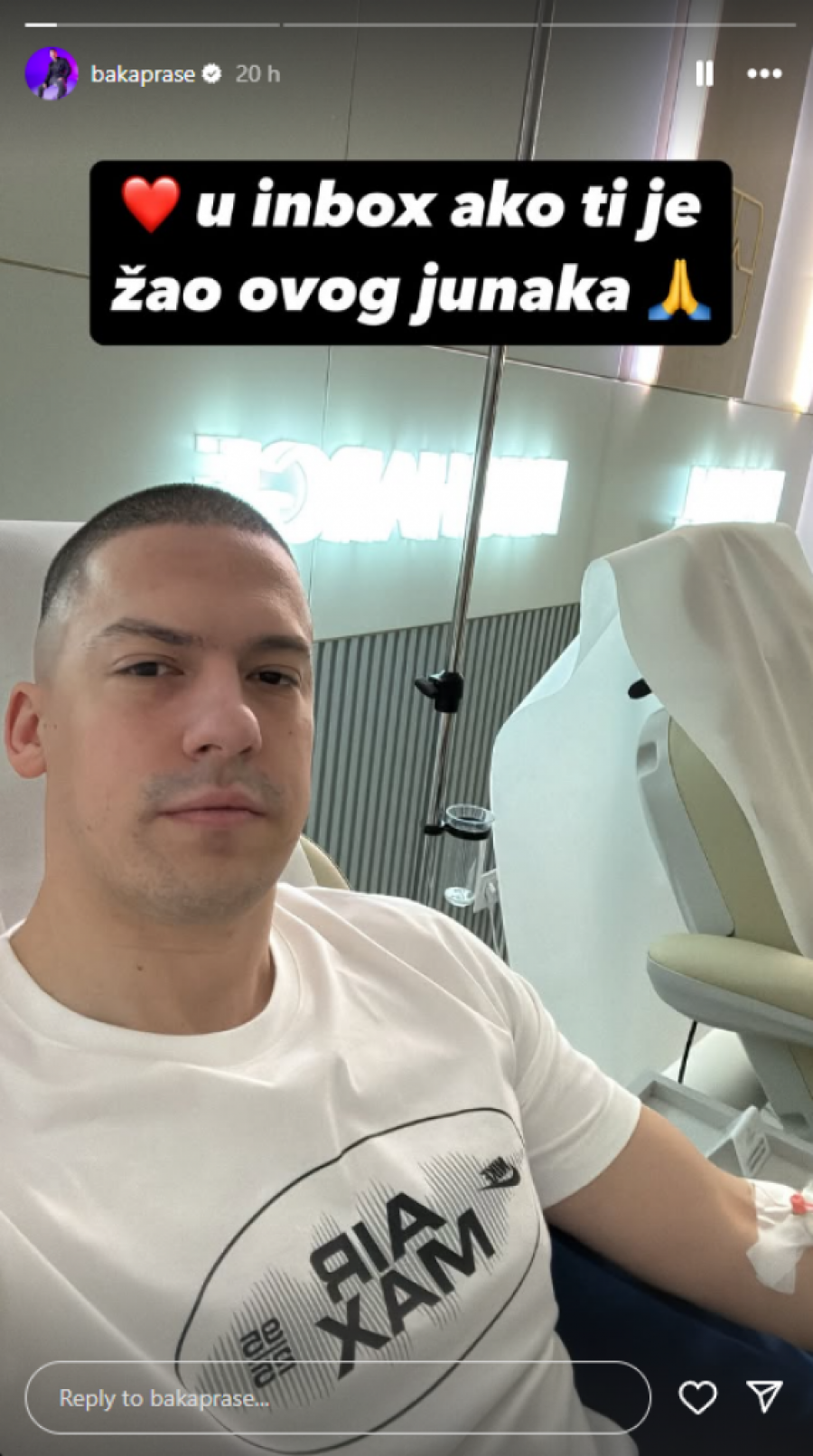 Poznati jutjuber Bogdan Ilić poznatiji kao Baka Prase na Instagram profilu objavio je sliku da je hospitalizovan i da je na infuziji.
