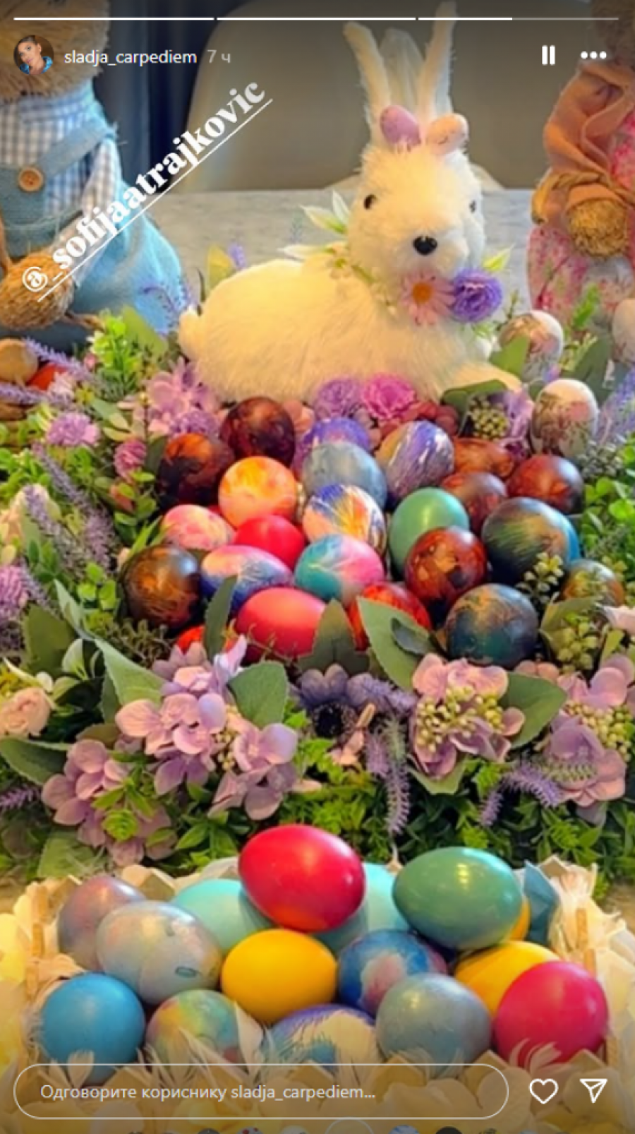 Na storijima koje je objavila na Instagramu, moglo se videti kako Slađana pažljivo farba uskršnja jaja, prateći tradicionalne običaje koji su deo pravoslavnog obeležavanja Vaskrsa. Ova praksa nije samo estetska, već nosi duboko simboličko značenje, predstavljajući novi život i prolećno buđenje. Slađana je pokazala kako se i u modernom svetu može očuvati duh tradicije, što je posebno važno za očuvanje identiteta i povezanosti sa korenima.