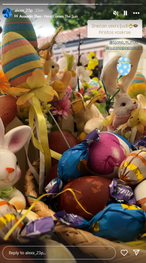 - Srećan Uskrs, ljudi. Hristos vaskrse - napisala je Aleksandra.