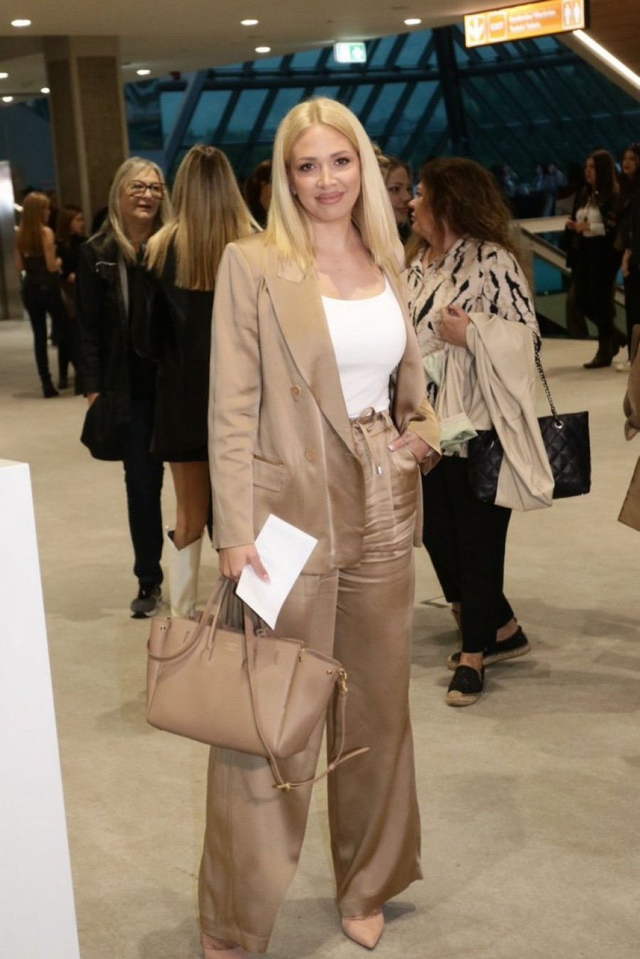 Među prvima koji su stigli da podrže Mariju bila je i njena koleginica i bliska prijateljica Milica Todorović. Popularna pevačica je privukla pažnju već pri samom ulasku u dvoranu, kada se pojavila u elegantnom i vrlo sofisticiranom izdanju koje je izazvalo oduševljenje prisutnih. Milica je za ovu priliku odabrala krem odelo koje savršeno prati liniju tela, dok je ispod sakoa nosila klasičnu belu majicu – jednostavan, ali efektan spoj elegancije i ležernosti.