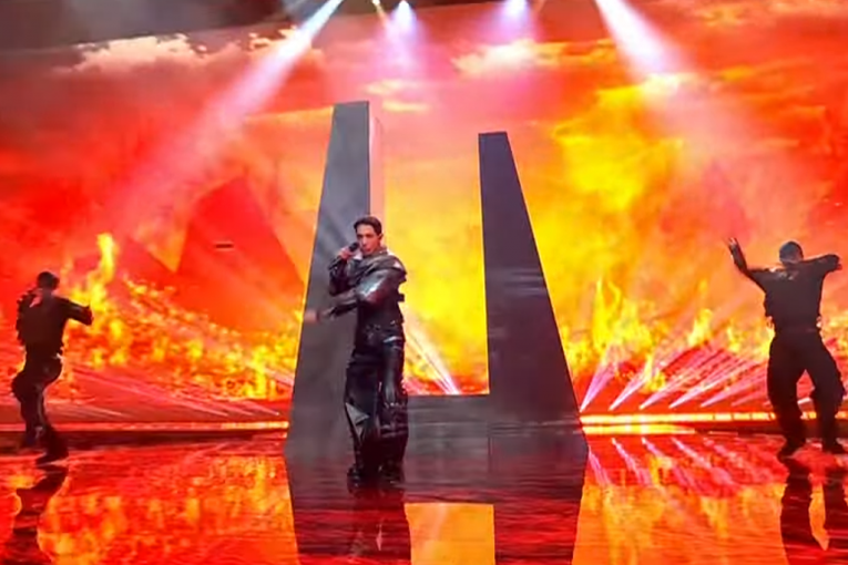 Belgijski predstavnik Red Sebastijan izvodi pesmu "Strobe Lights" s elektronskim zvukom koji je podigao atmosferu u areni.