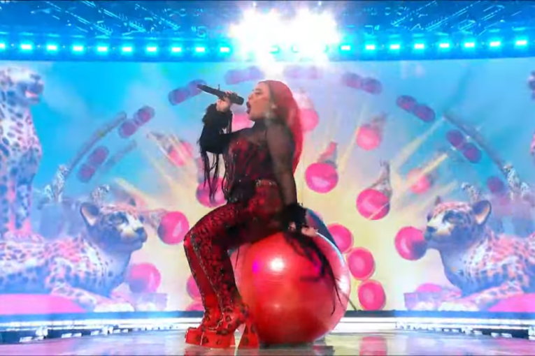 NOVI SKANDAL TRESE EVROVIZIJU! Pevačica se UVIJALA na disko-kugli, seva MEĐUNOŽJE dok simulira intimne odnose! ŠOK!