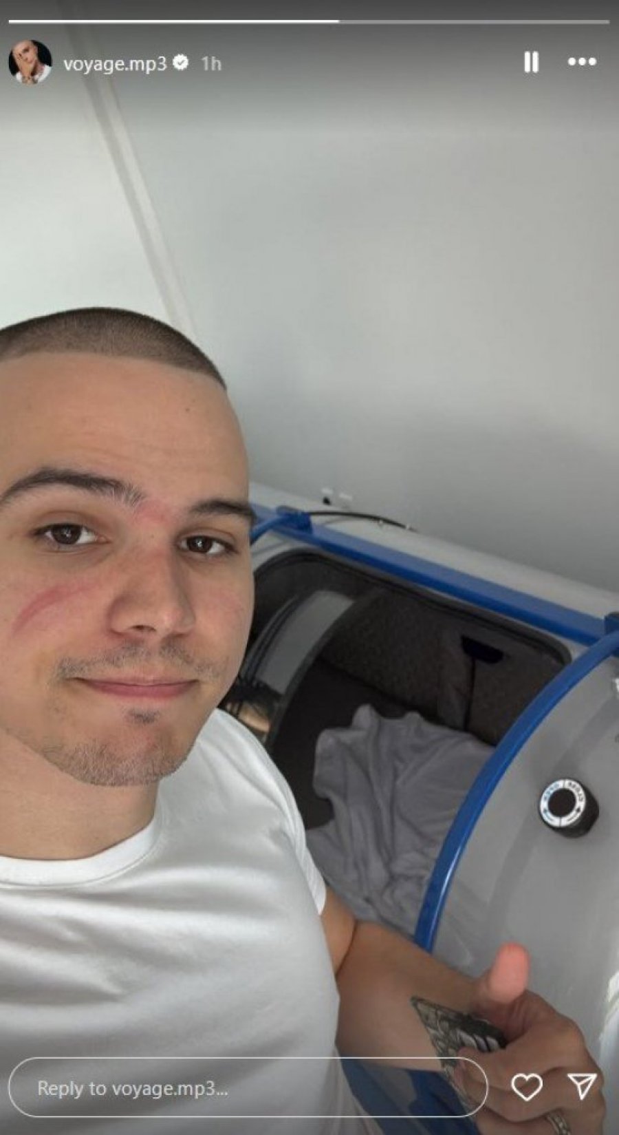 Vojaž je u toku današnjeg dana objavio fotografiju putem društvene mreže Instagram, na kojoj se moglo videti da ima crvene tragove po licu.