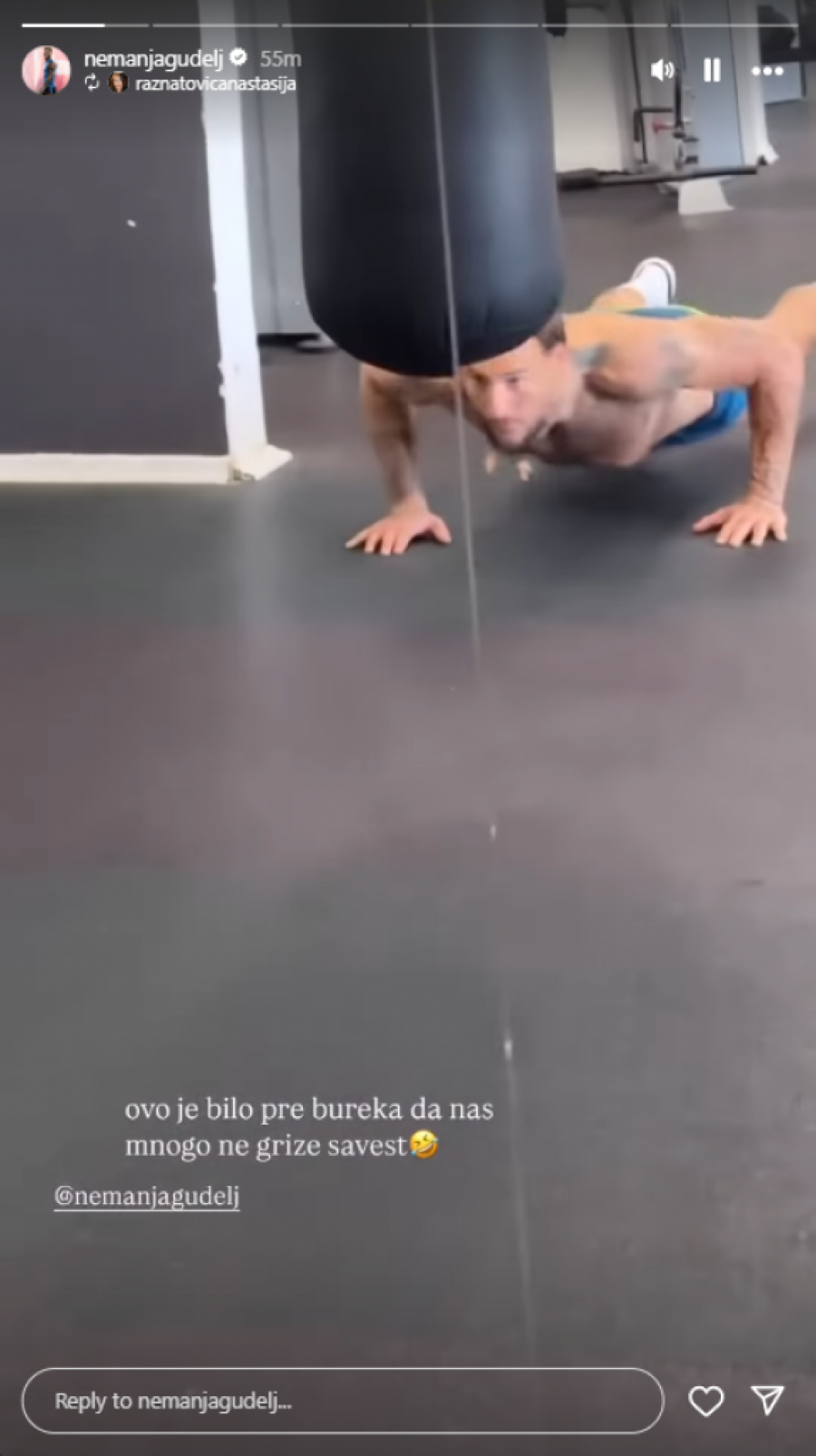 Međutim, ono što je privuklo najveću pažnju njihovih fanova je snimak iz teretane. Anastasija je pokazaja svoje vitko telo u uskoj sportskoj odeći, a potom uslikala Nemanju, koji je radio sklekove.