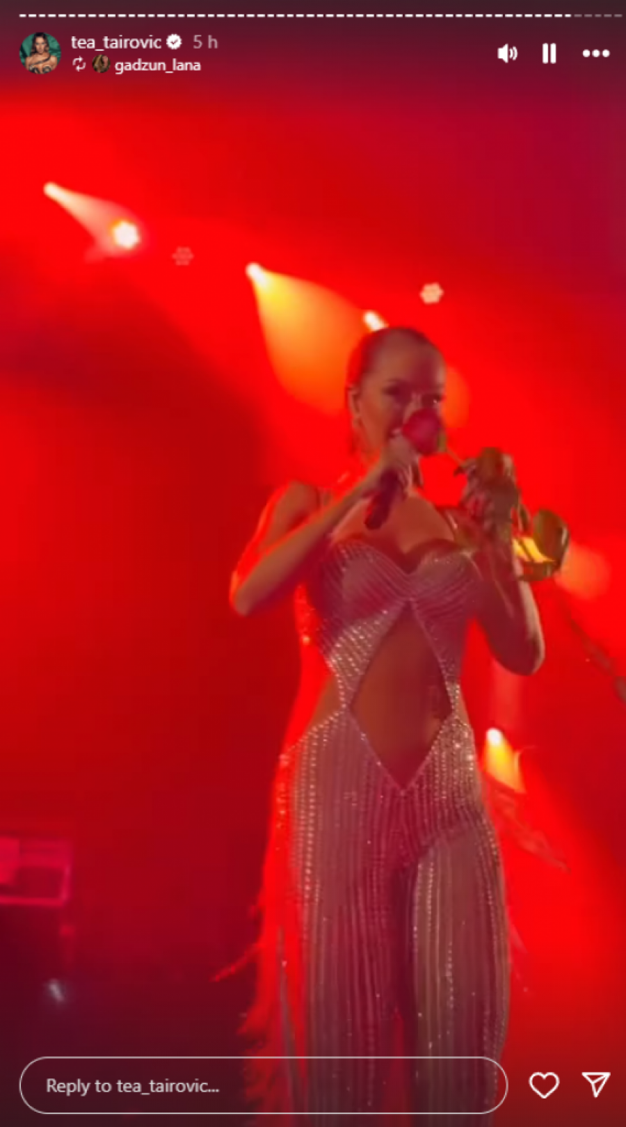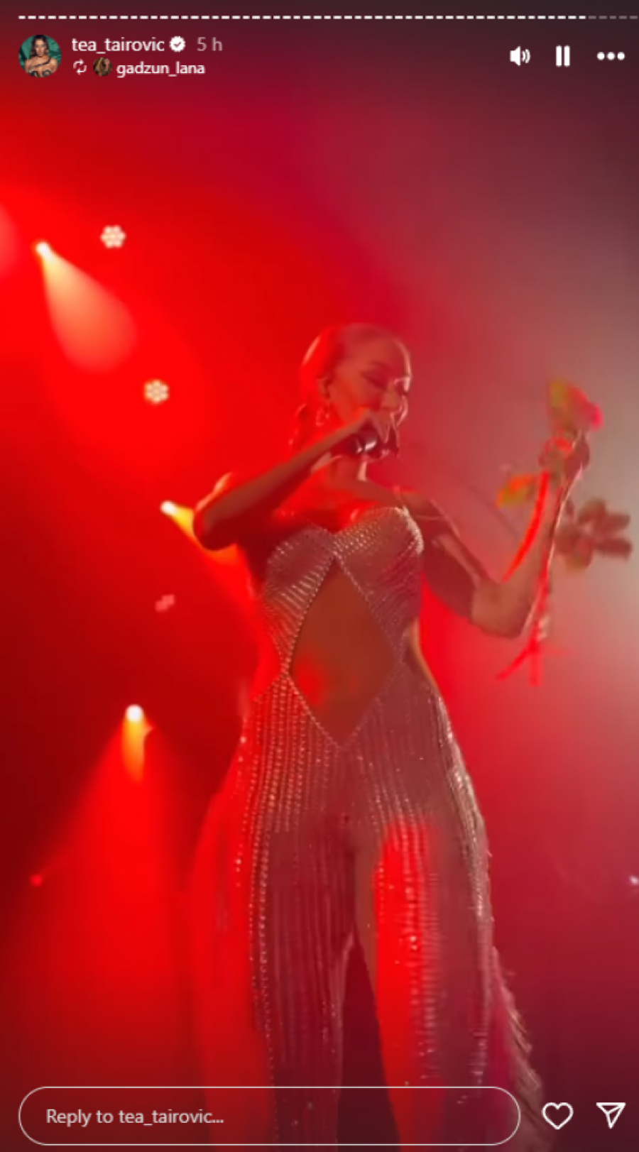 Pevačica Tea Tairović prošle noći imala je nezaboravan nastup u Hamburgu, koji je obeležio poseban trenutak tokom njenog izvođenja. Ova talentovana umetnica, poznata po svojim emotivnim pesmama, nije mogla da zadrži suze kada je jedan od njenih vernih fanova odlučio da joj pokloni ružu. Ovaj gest ju je duboko raznežio, a publika je to s oduševljenjem ispratila.