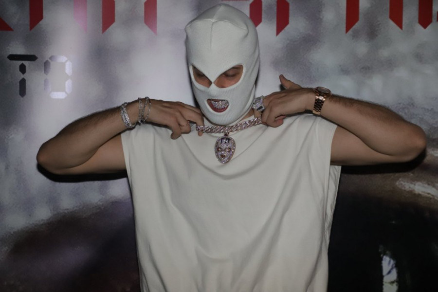 Popularni muzičar je prethodne večeri napravio raskošnu promocija svog novog albuma "Nema spavanja", koja se održala pred brojnim predstavnicima medija i poznatim ličnostima i reperovim kolegama. Devito je i ovom prilikom nosio svoju kultnu masku, dok je skupoceni nakit koji je poneo privukao posebnu pažnju prisutnih.