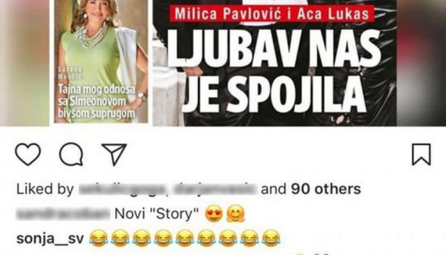 Najnovija saradnja Milice Pavlović i Ace Lukasa koji su snimili duet, donela im je naslovnu stranu u jednom magazinu u kom je naslov "Ljubav nas je spojila", a kada se ovaj intervju pojavio u javnosti reagovala je pevačeva bivša supruga Sonja Vuksanović.