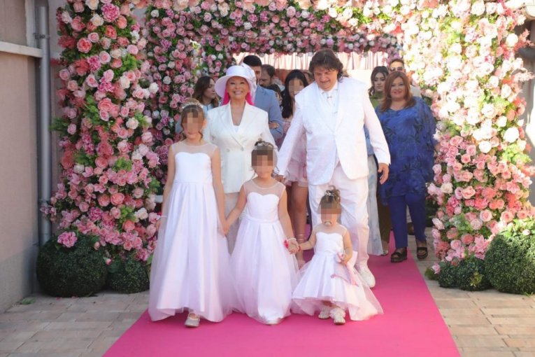 Svečanost se odvijala u njihovom dvorištu koje je za ovu priliku pretvoreno u cvetnu bajku. Dekoracija je bila nešto što se ne viđa često — više od 1.000 kilograma cveća dopremljeno je u četiri do pet šlepera. Ružičasti tonovi dominirali su čitavim ambijentom, a dom poznatog para krasila su zlatna slova s njihovim inicijalima, dok je staza do ulaza bila pokrivena roze tepihom. Ikebane od ruža, božura i drugih luksuznih vrsta cveća dodatno su doprinele atmosferi dostojnoj bajke.