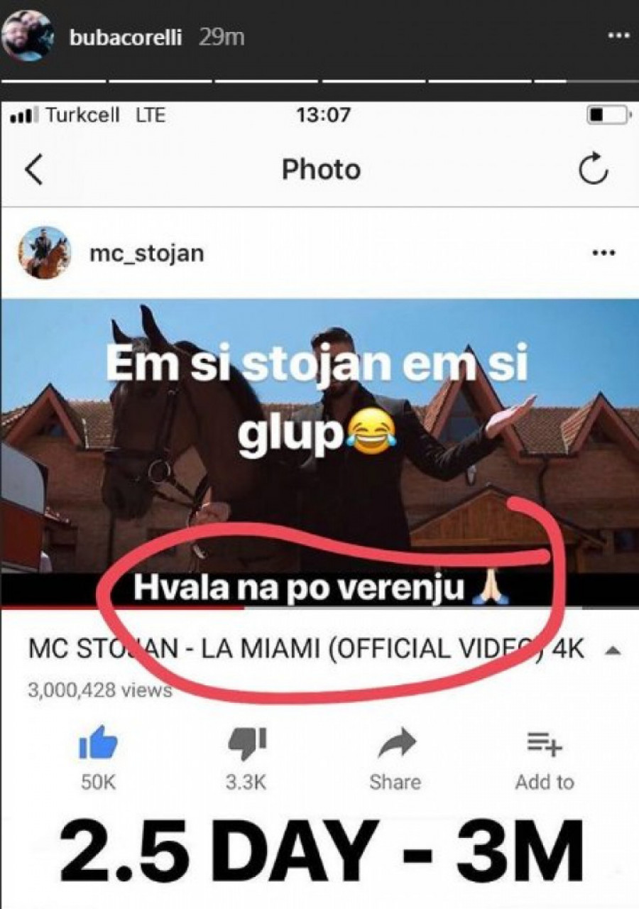 Foto: instagram.com/bubacorelliNakon toga Stojan je odgovorio u svom maniru, bez psovki: