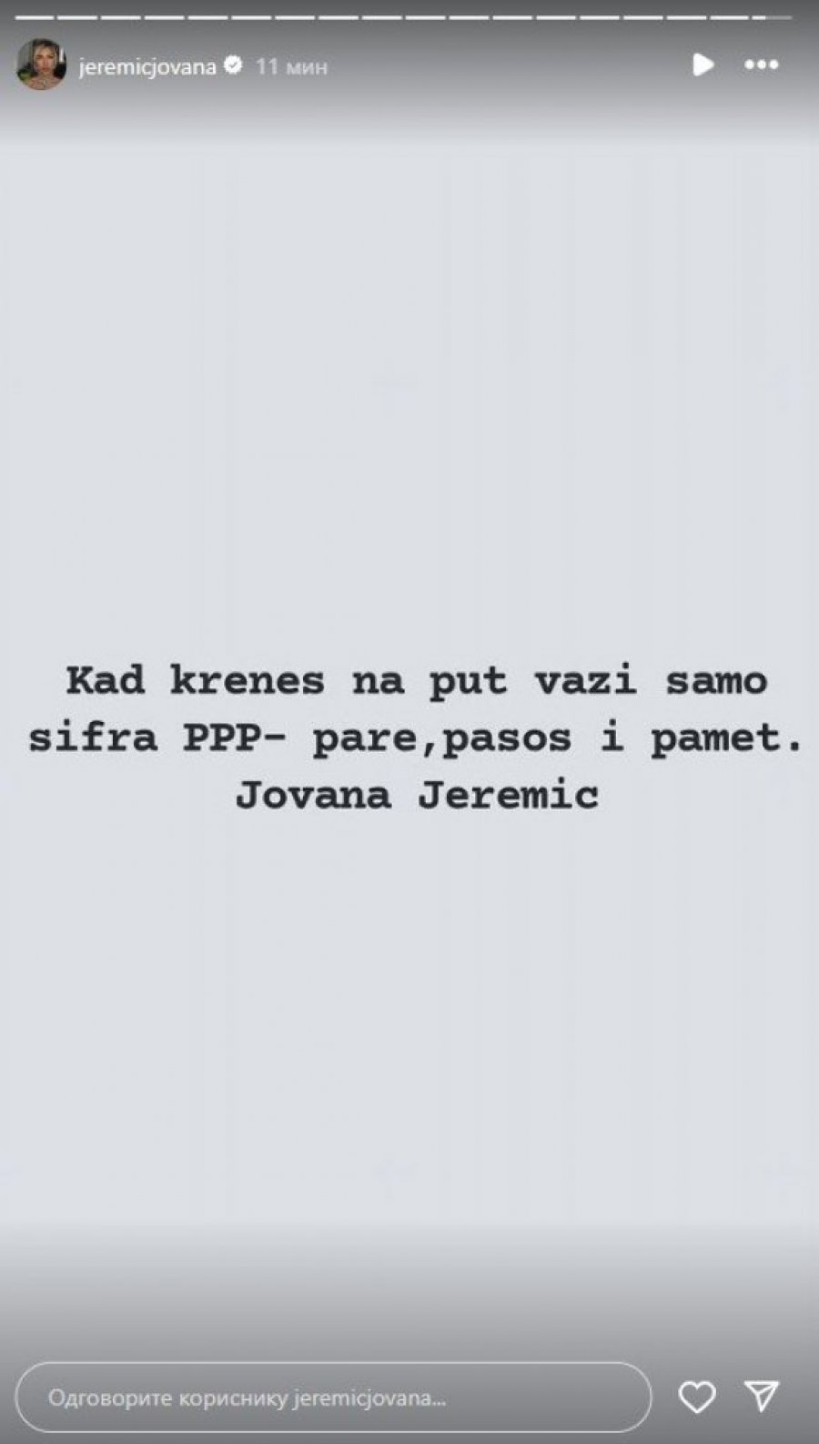 - Kad kreneš na put važi samo jedno – šifra PPP. Pare, pasoš i pamet - poručila je Jovana.