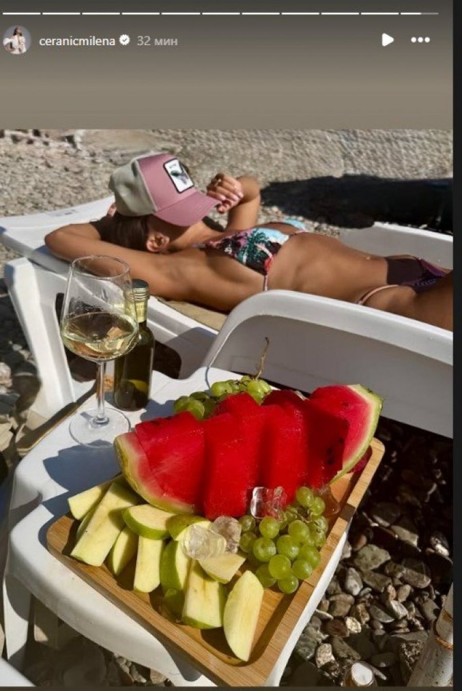 Na slici koju je objavila na Instagramu, Milena pozira sa osmehom na licu, a u kadru se pored njenog besprekornog izgleda našlo i letnje voće, kao i čaša vina – savršen simbol uživanja. U prvom planu je njena zategnuta figura.