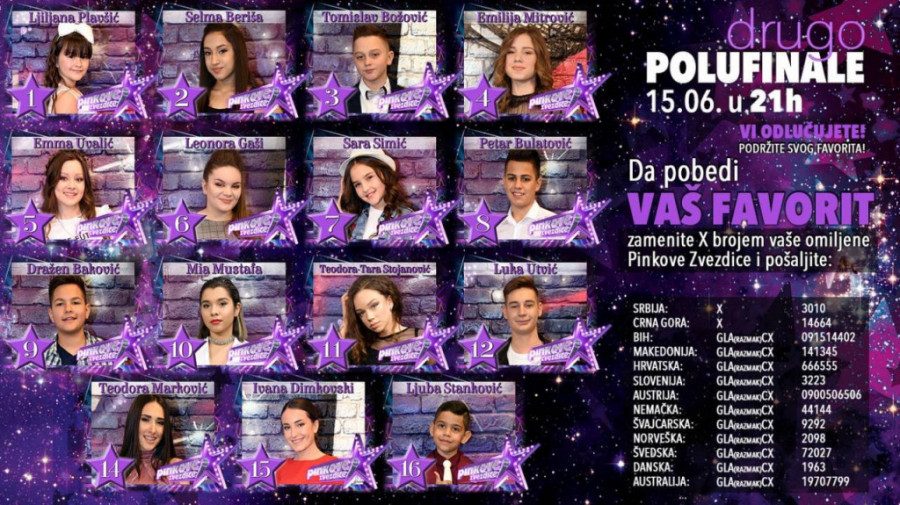 Ne propustite spektakularne nastupe 15 najboljih učesnika u drugom polufinalu četvrte sezone najgledanijeg dečijeg muzičkog takmičenja "Pinkove zvezdice" u petak 15. juna od 21 čas samo na TV Pink!