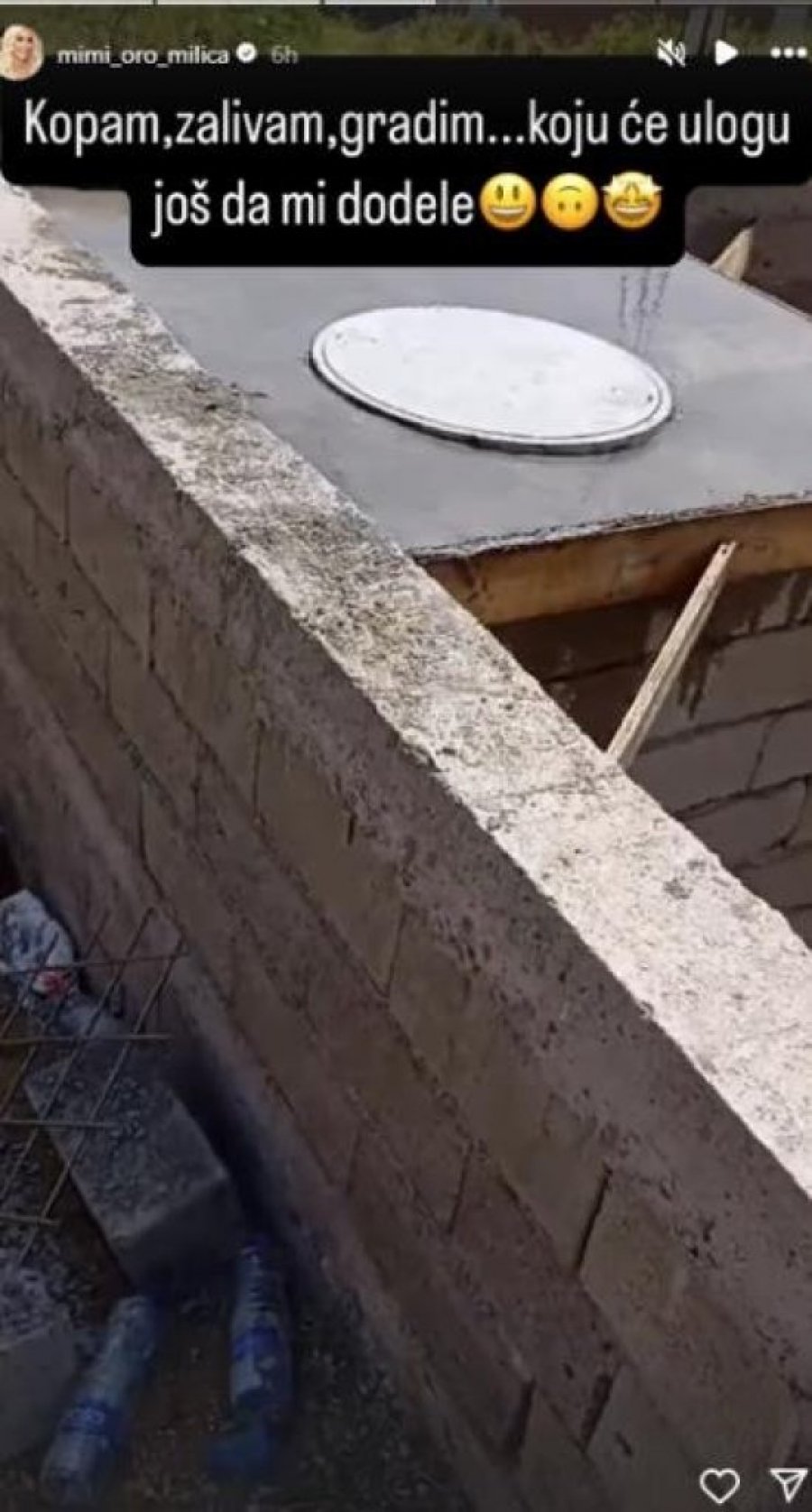 Na snimku koji je podelila na društvenim mrežama, može se videti kako u markiranoj odeći boravi na gradilištu u Beogradu, dok zaliva šahtu pored novoizgrađenog objekta. Uz video, Mimi je duhovito poručila: