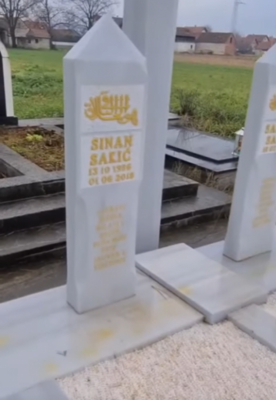 Sahranjen je u impozantnoj grobnici koja je, prema izveštajima medija, koštala čak 20.000 evra. Ova cifra može delovati nesvakidašnje kada je reč o izgradnji spomenika, ali porodica Sakić nije žalila novac za izradu mermerne strukture na mestu gde počiva njihov voljeni. Grobnica je postala simbol Sinanove veličine i poštovanja koje su njegovi najbliži gajili prema njemu, a mnogi ljudi danas posećuju ovo mesto kako bi se prisetili njegovog talenta i doprinosa muzici.