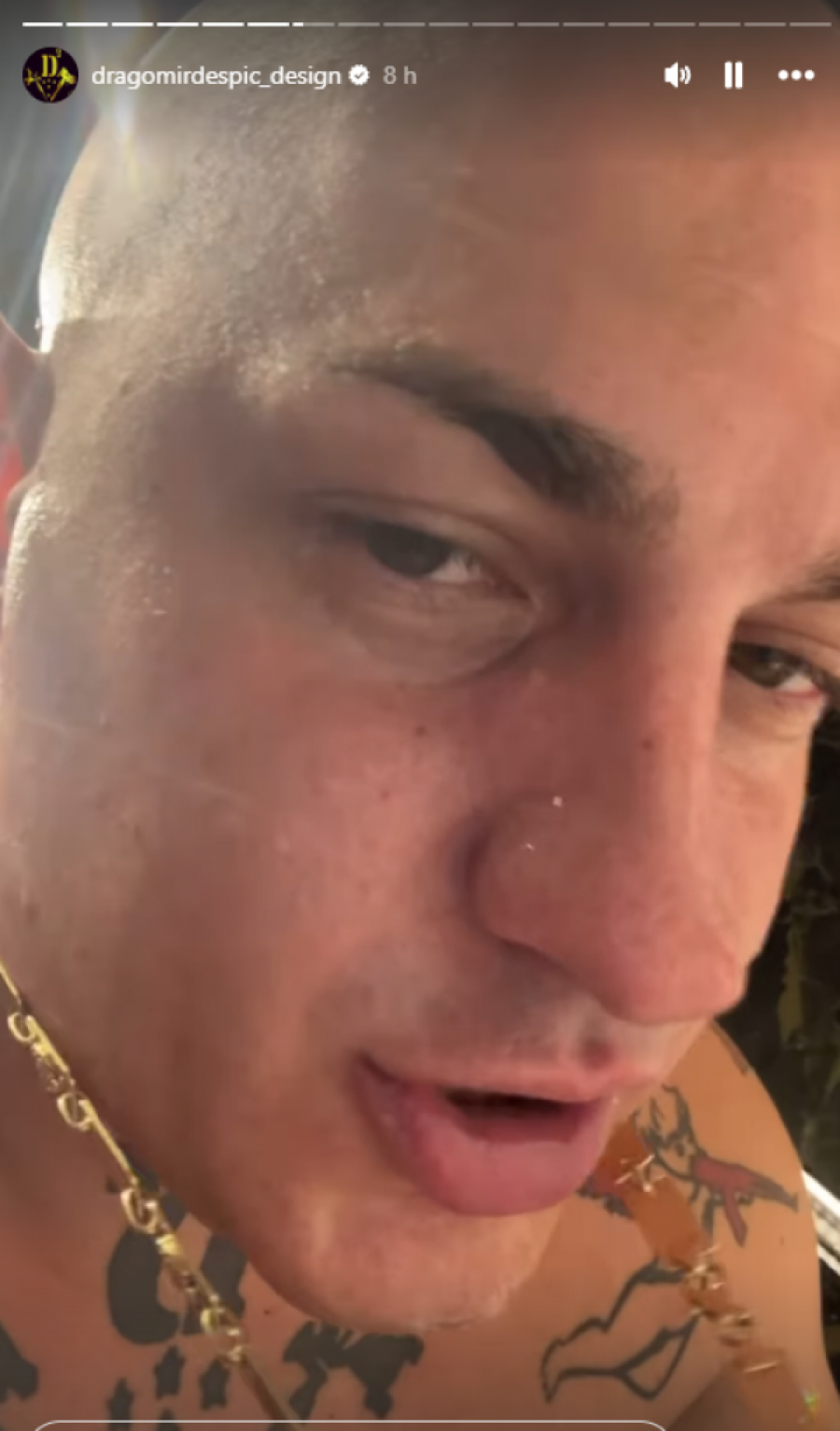 Poznati reper Dragomir Despić Desingerica, koji je poznat po svom jedinstvenom stilu i energiji na sceni, nedavno je na svom Instagram profilu podelio snimak u kojem se žali pratiocima na svoje zdravstveno stanje. U videu, Dragomi otkriva da ga muče visoka temperatura i virus, što ga dodatno lomi i čini da se oseća iscrpljeno. Njegov glas deluje oslabljeno, a bol u grlu dodatno otežava situaciju.