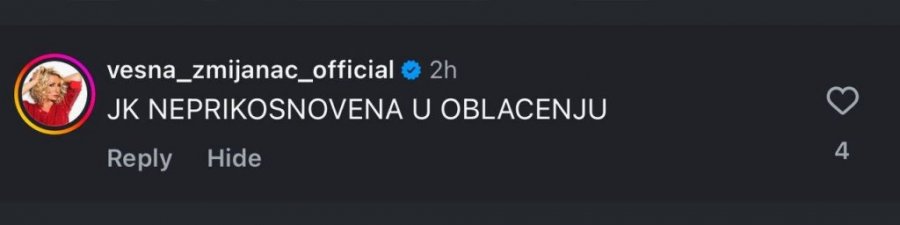 Ono što je dodatno začinilo celu priču jeste komentar iskusne pevačice Vesne Zmijanac, koja je, bez dileme, Karleušu proglasila ikonom stila.