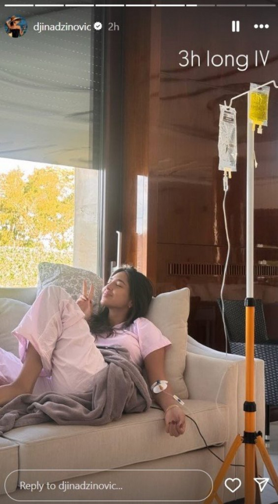 Đina je uslikana kako leži na kauču u vili Džinovića, izgledajući iscrpljeno dok je bila povezana na infuziju. Ovaj trenutak je izazvao pažnju i komentare, jer je očigledno da je posle brojnih njen imunitet malo ispaštao.