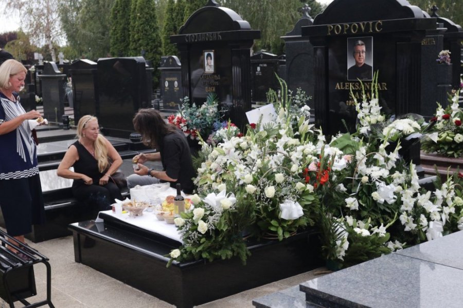 Atmosfera je odmah postala napetija kada je Rale stigao u društvu prijatelja Mikana Kozomare, jer svi prisutni znaju da njegov privatni život izaziva pažnju javnosti. Rale je na groblje došao noseći sveću, a nakon pomena zapalio je cigaretu i popio čašicu rakije za pokoj Sašine duše.