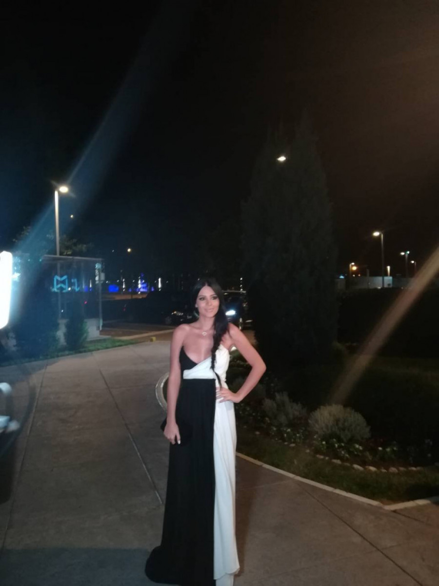 Anastasija je, kao i uvek, izgledala zanosno u dugoj crno-beloj haljini