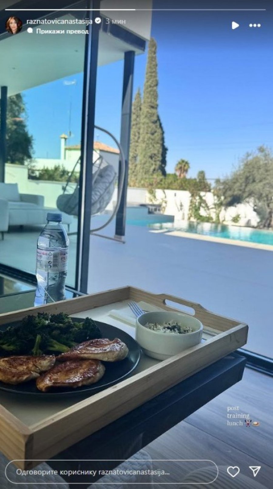 Pevačica i ćerka Svetlane Cece Ražantović, Anastasija već godinama uživa u skladnoj ljubavi sa srpskim reprezentativcem, Nemanjom Gudeljem u Sevilji. Ražanotiveća je prekinula muzičku karijeru kako bi se posvetila ljubavnom životu, ali i svom telu. Ona vodi računa o izgledu, a sada je na svom instagramu podelila svoj obrok nakon treninga. Anastasija i Nemanja važe za jedan od najlepših parova.